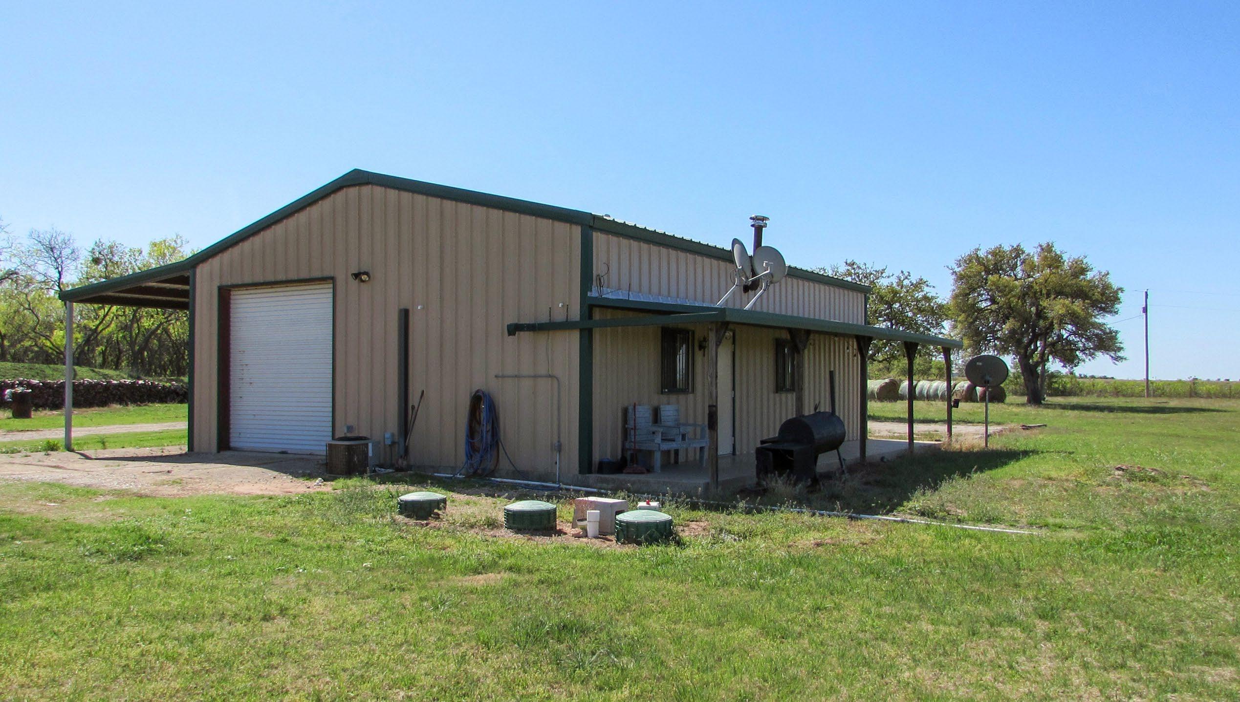 The ranch is improved by a small barndominium 30’ x 40’ (1,200 sq. ft.) with a 15’ x 40’ covered area/carport off of the east side. The living area consists of 880 sq. ft. with two bedrooms/one bath with concrete floors and central heating and air. There is a small garage that consists of approximately 320 sq. ft.