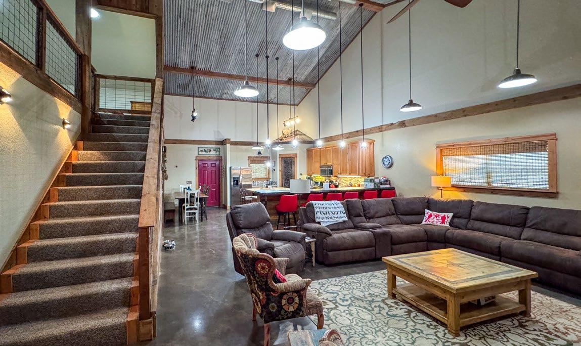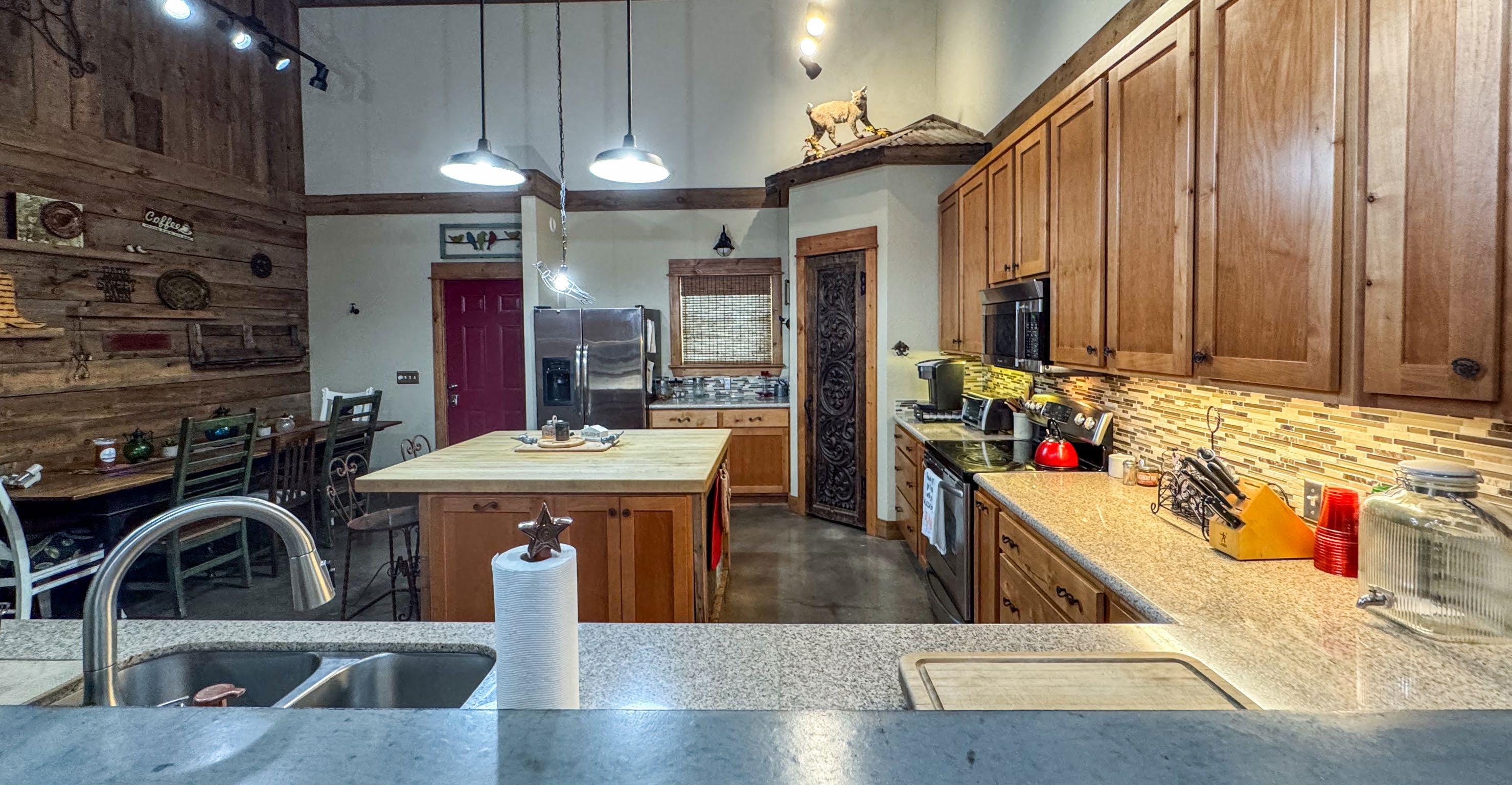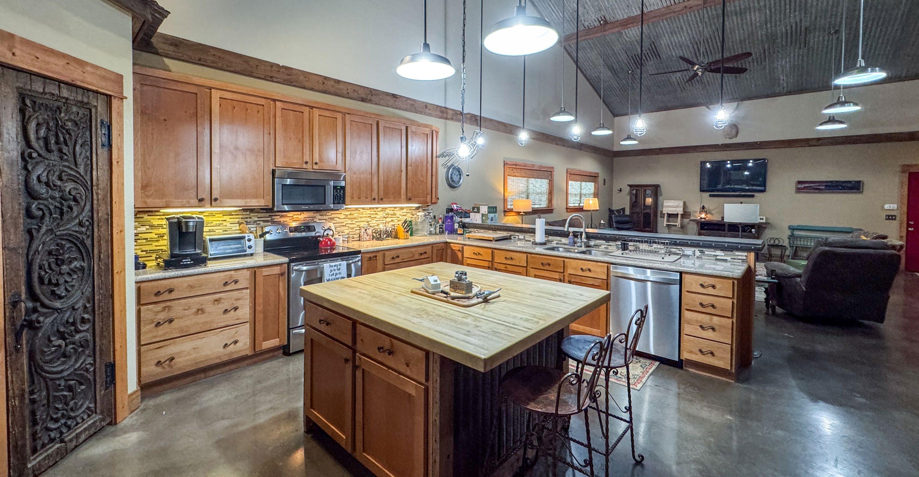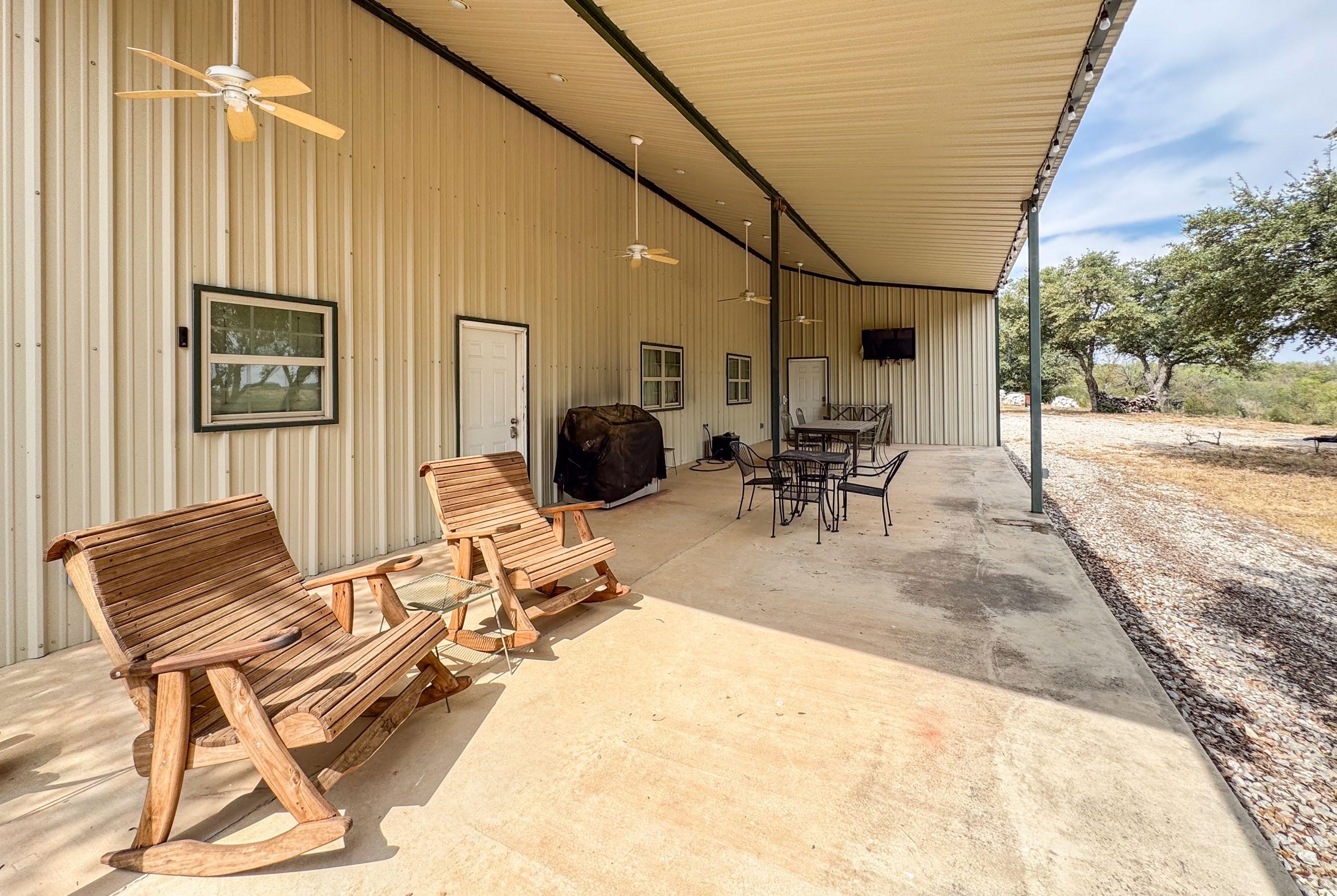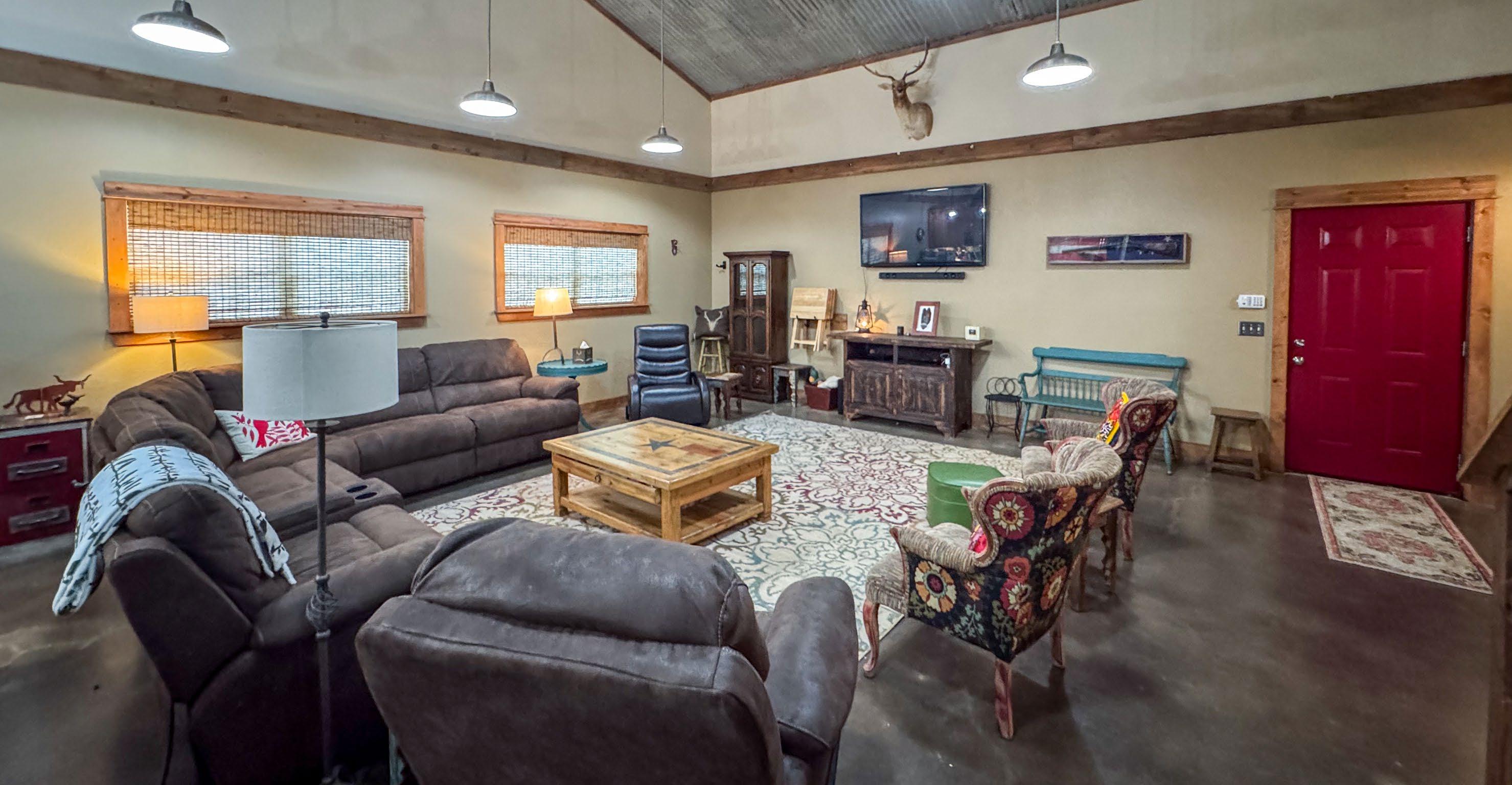 The centerpiece to the ranch is a barndominium located on the northwest side of the property. It is an all-metal structure, with concrete floor throughout. The total size is 75’ x 50’ (3,750 sq. ft.) structure, with a 15’ x 50’ covered porch off the south side. There is also a small 30’ x 20’ covered car port area on the northeast side of the barn.