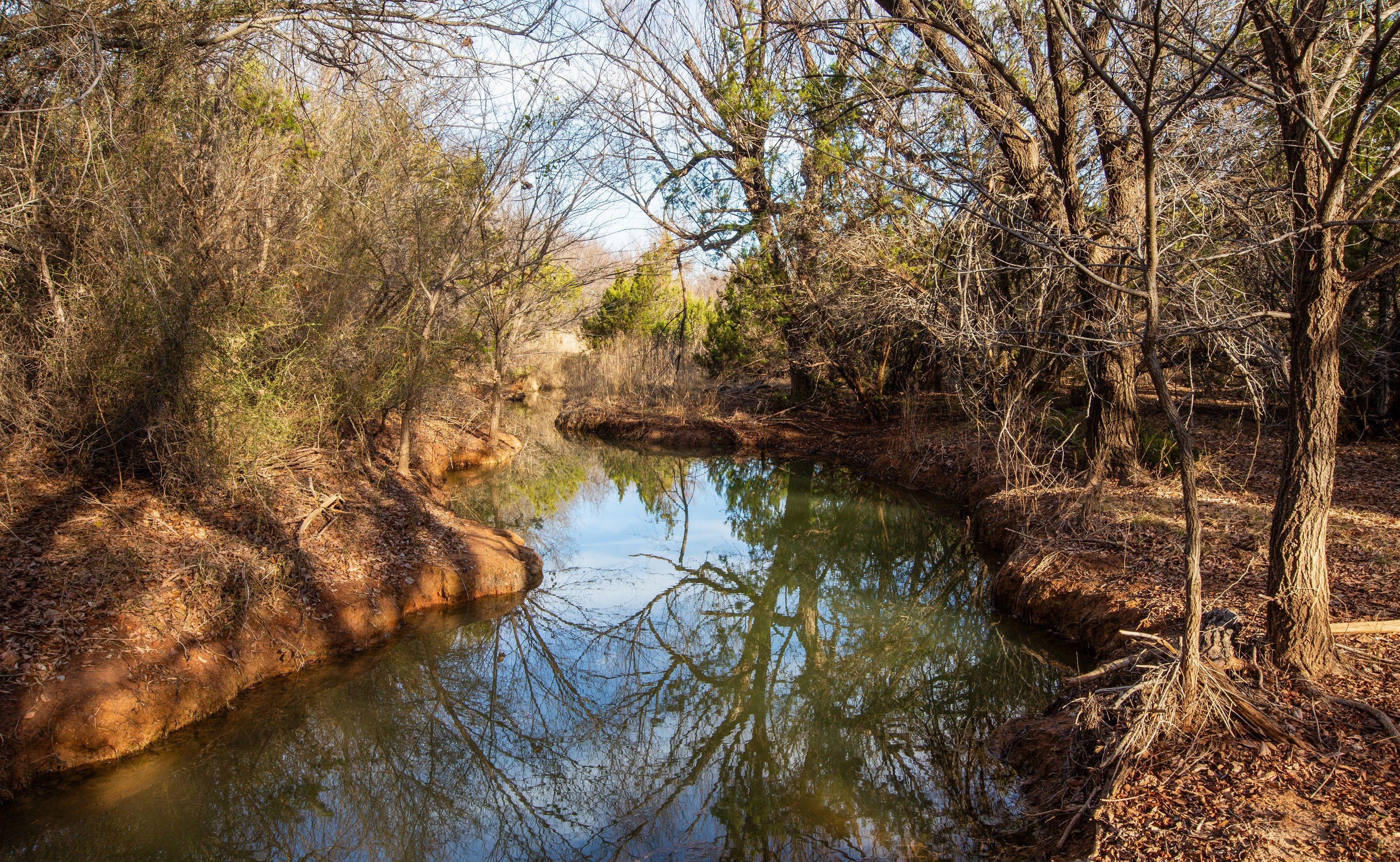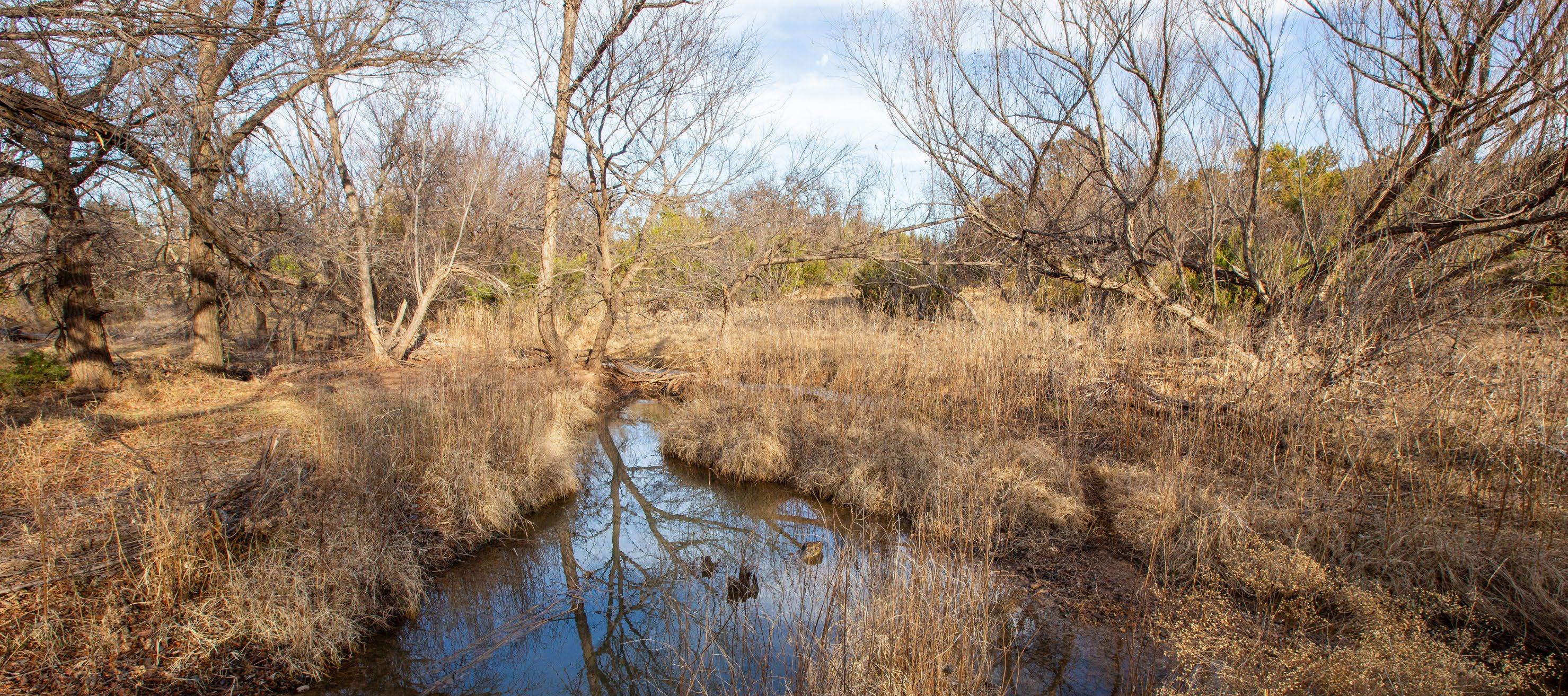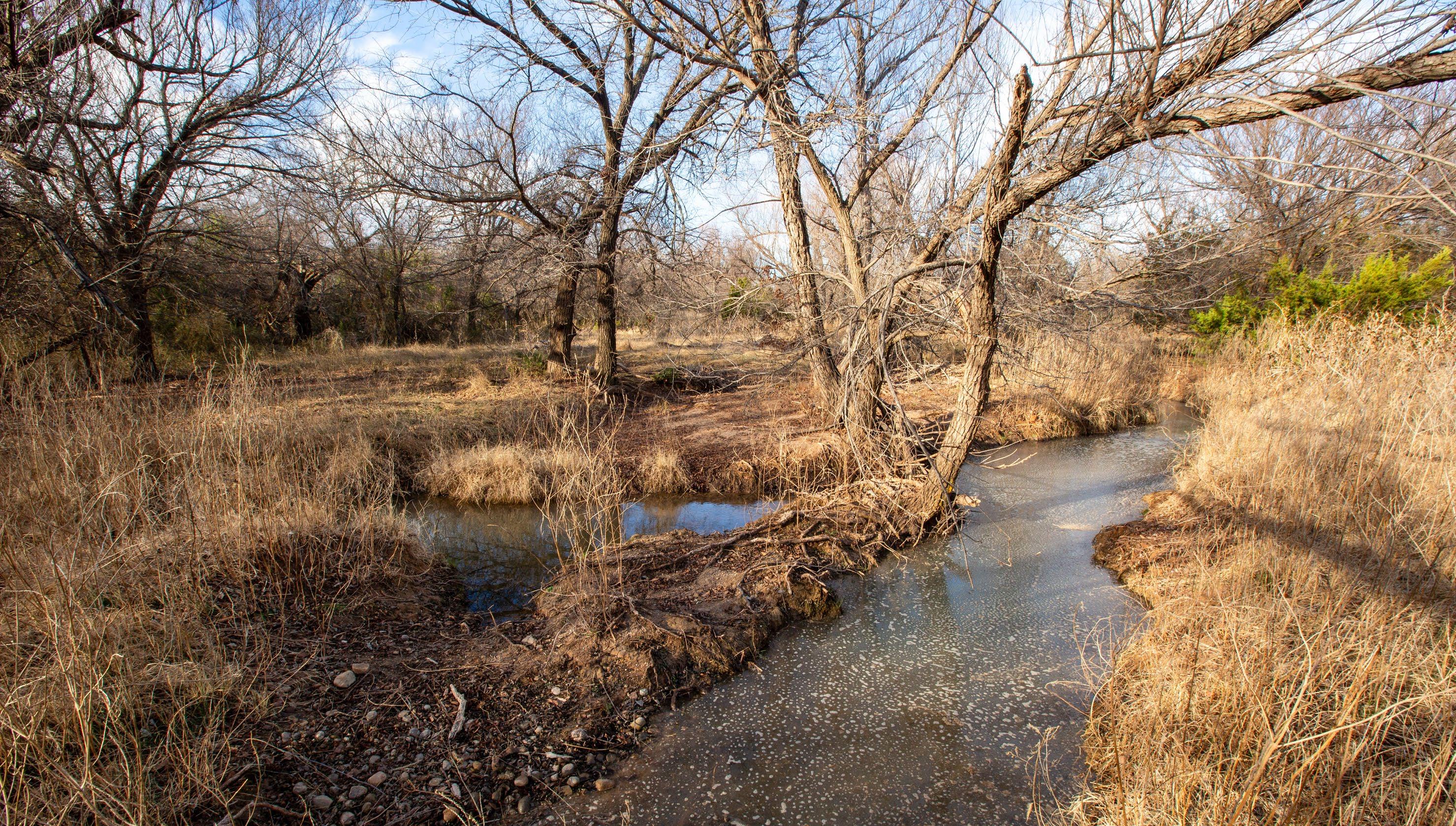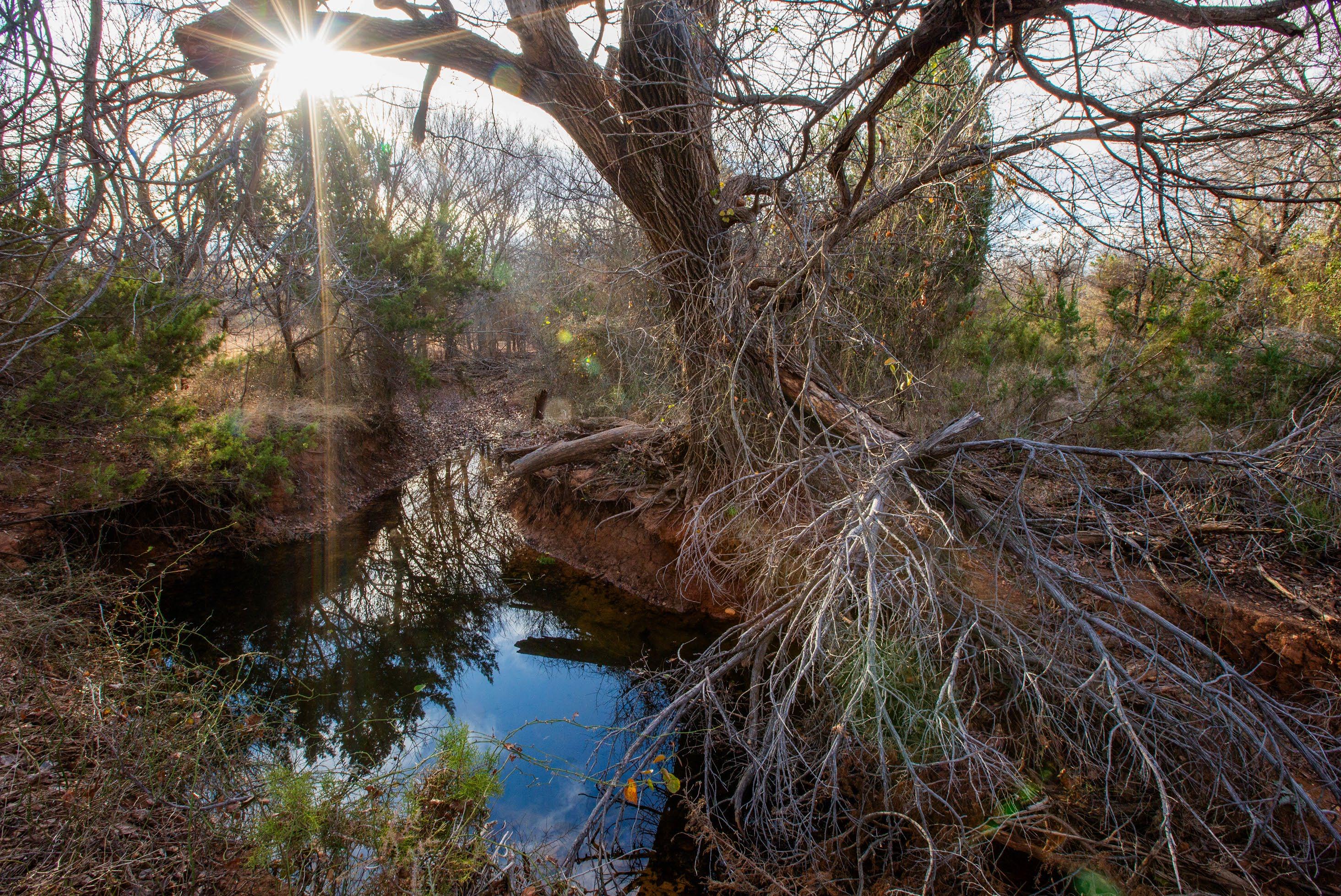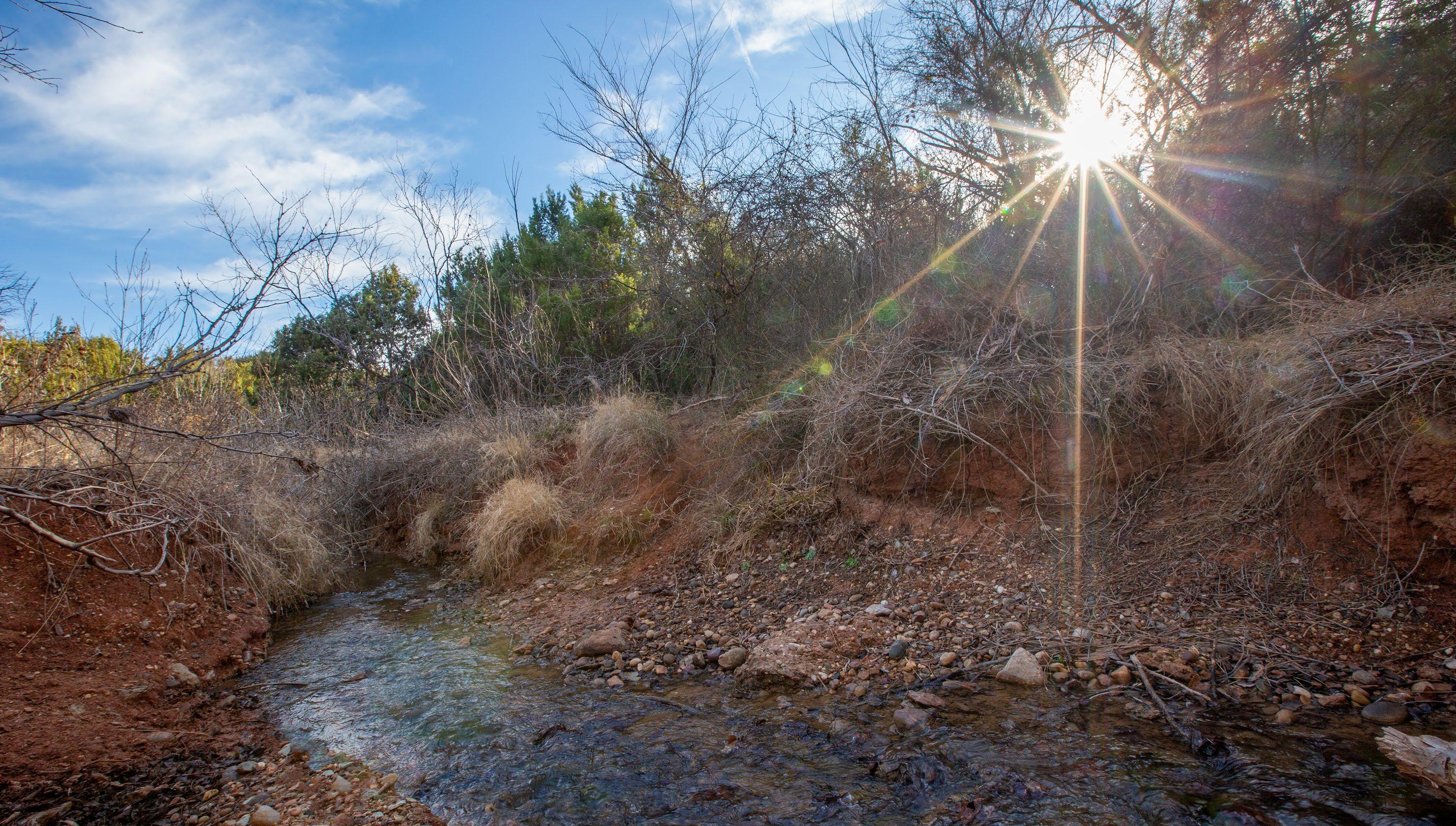 These springs provided dependable water during historic droughts, including 1902 and 1918, when cattle were driven long distances to reach reliable flow, and again during the 2011 drought, demonstrating exceptional long-term resilience. Numerous secondary seeps discharge along the creek corridor, creating shaded pools, wet banks, and continuous surface water that persists year-round.