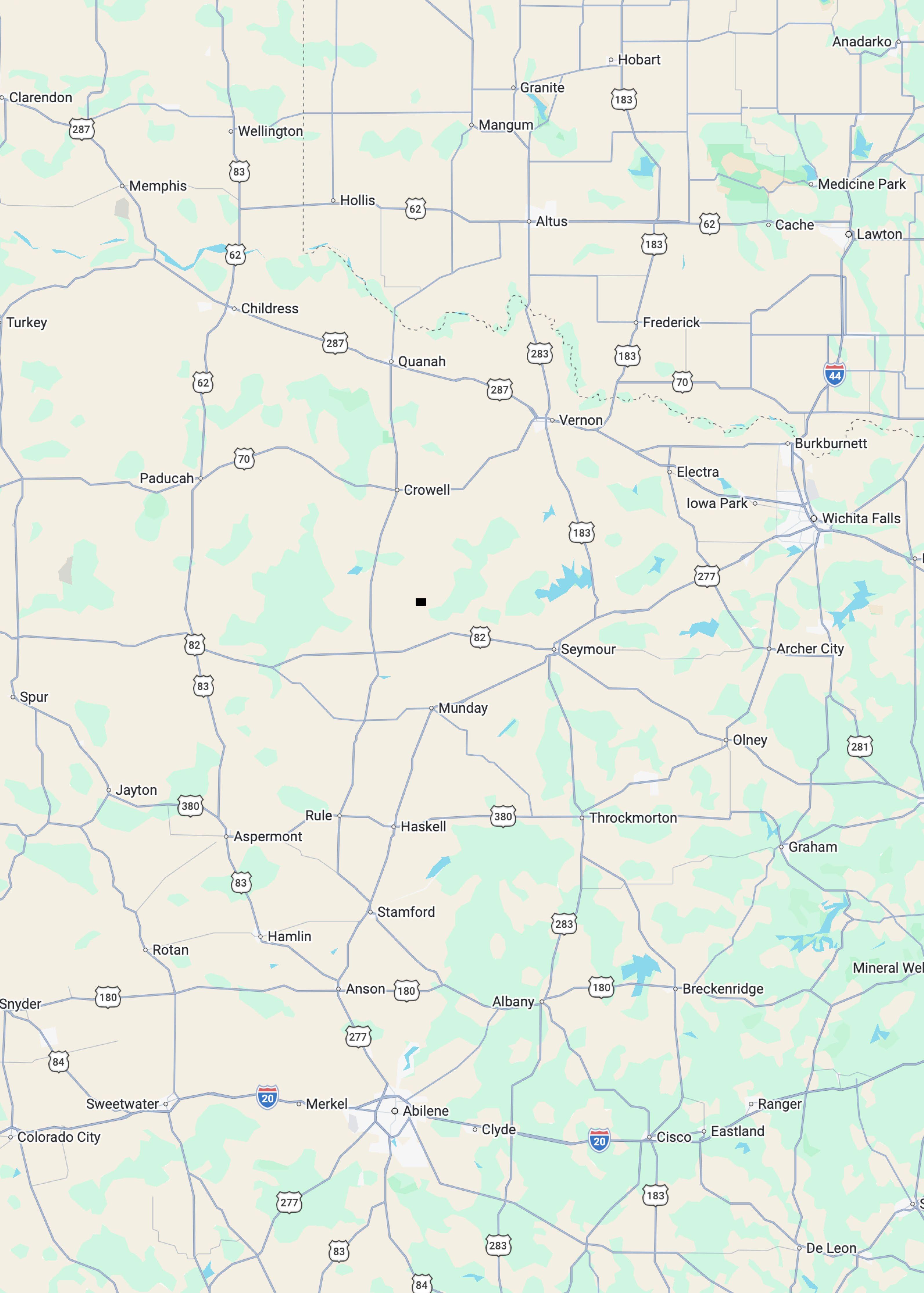 General aviation access is available via Munday Municipal Airport (32F) with a runway of 3200-foot asphalt runway, Harrison Field of Knox City Airport (F75), featuring a 3,200-foot asphalt runway, and Seymour Municipal Airport (60F), offering a 4,300-foot asphalt runway suitable for a wide range of general aviation aircraft.