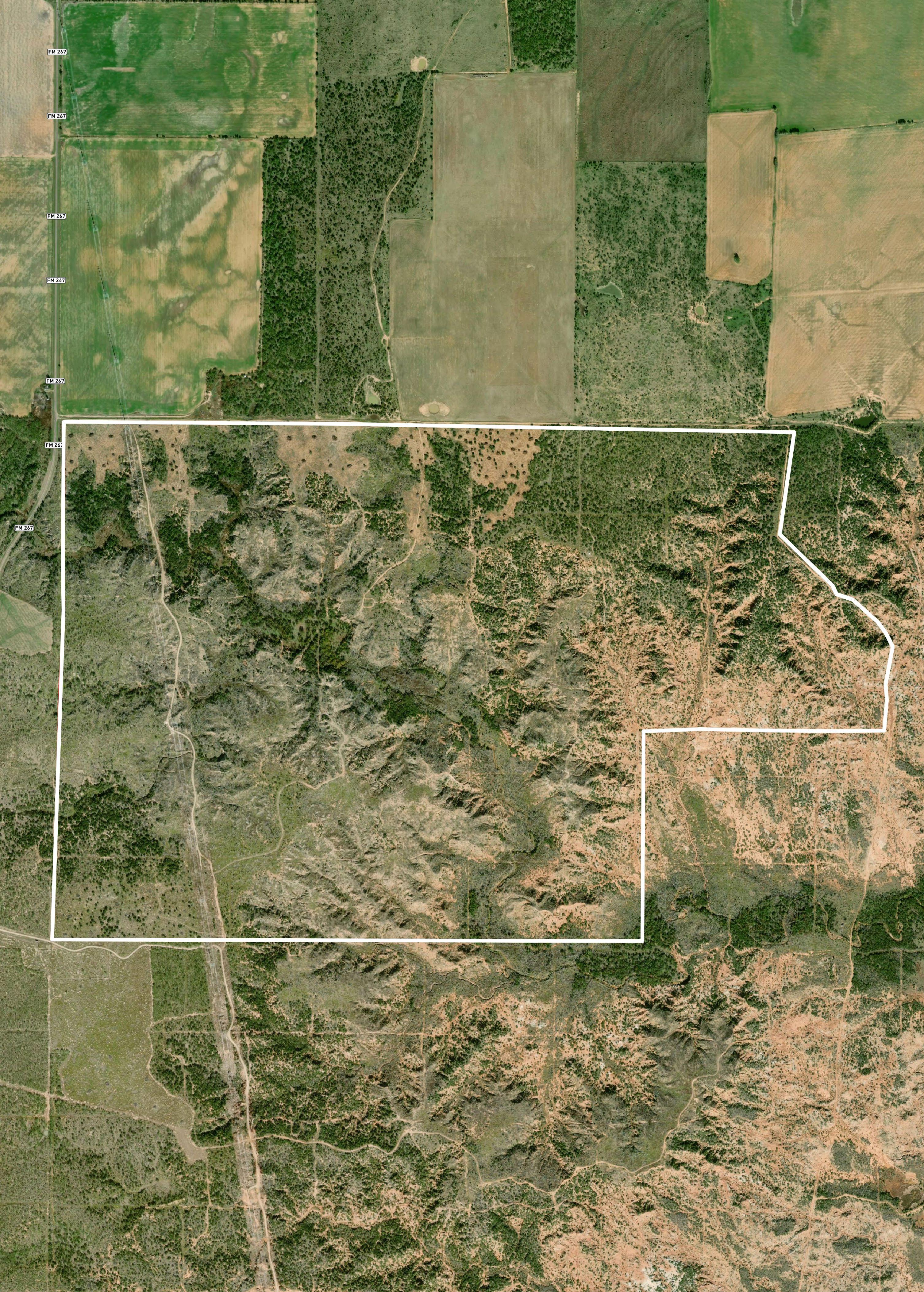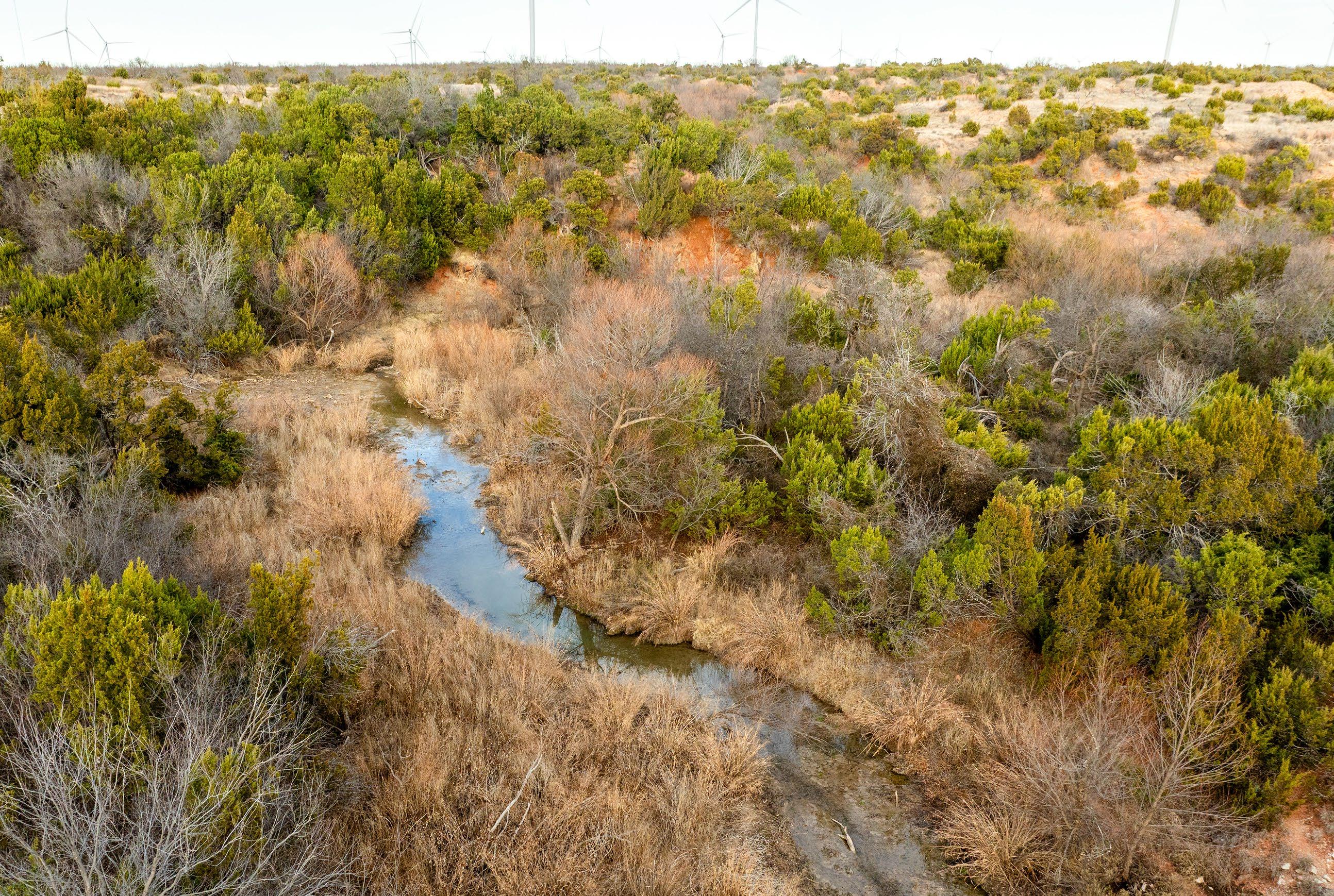 The ranch offers a diverse and highly desirable combination of rugged badlands and breaks, a fertile hardwood-lined riparian corridor, and deep-soil uplands supporting native grasses such as buffalo grass. Additional native species include silver bluestem, little bluestem, and tobosa grass, contributing to strong grazing capacity, wildlife habitat, and overall drought resilience.