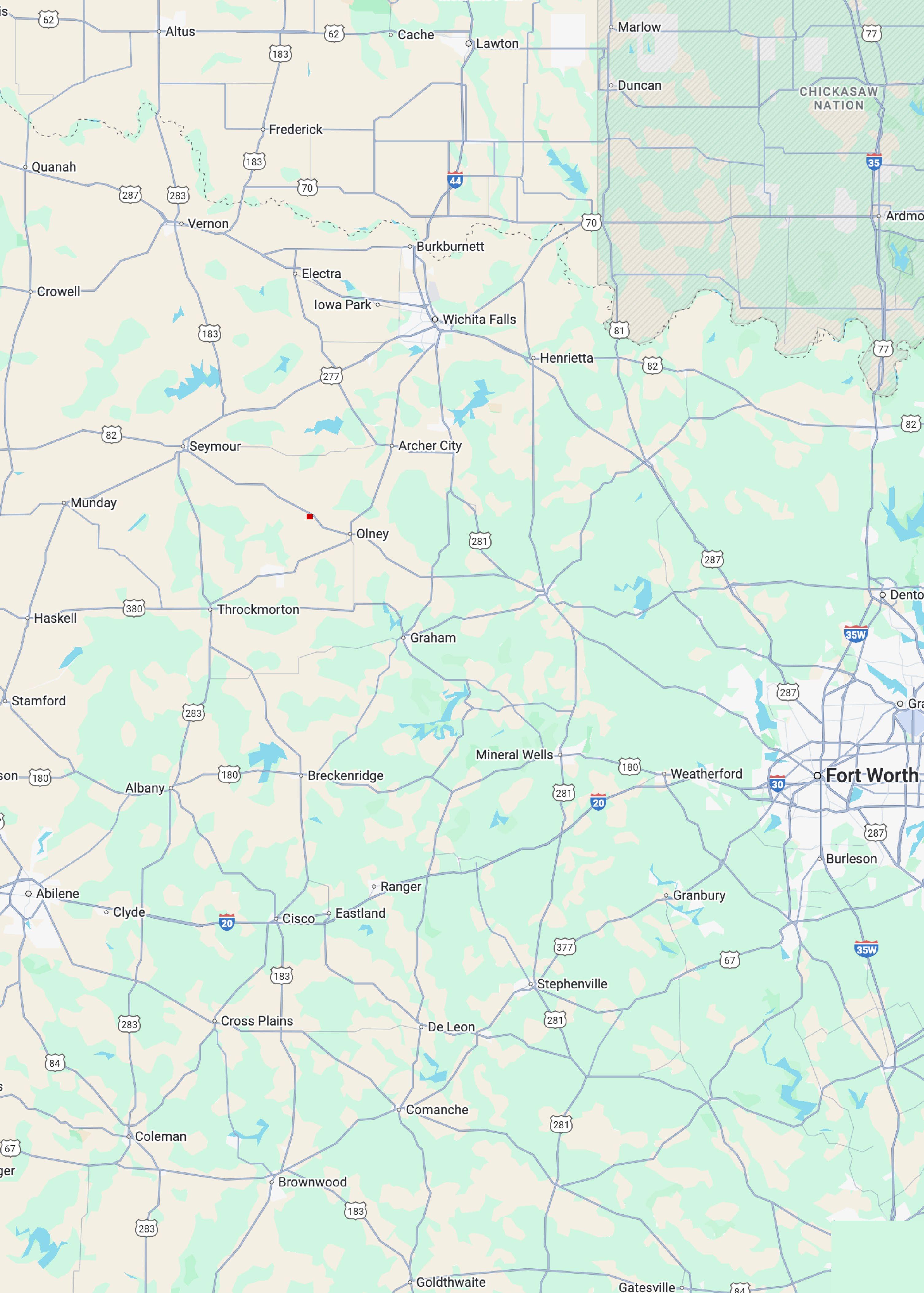 This 309± acre ranch features a well-balanced blend of cultivation, native pasture, and scenic terrain. The location places it within easy reach of major destinations, including Possum Kingdom Lake (48 miles), Wichita Falls (56 miles), Fort Worth (117 miles), and Dallas (145 miles).
