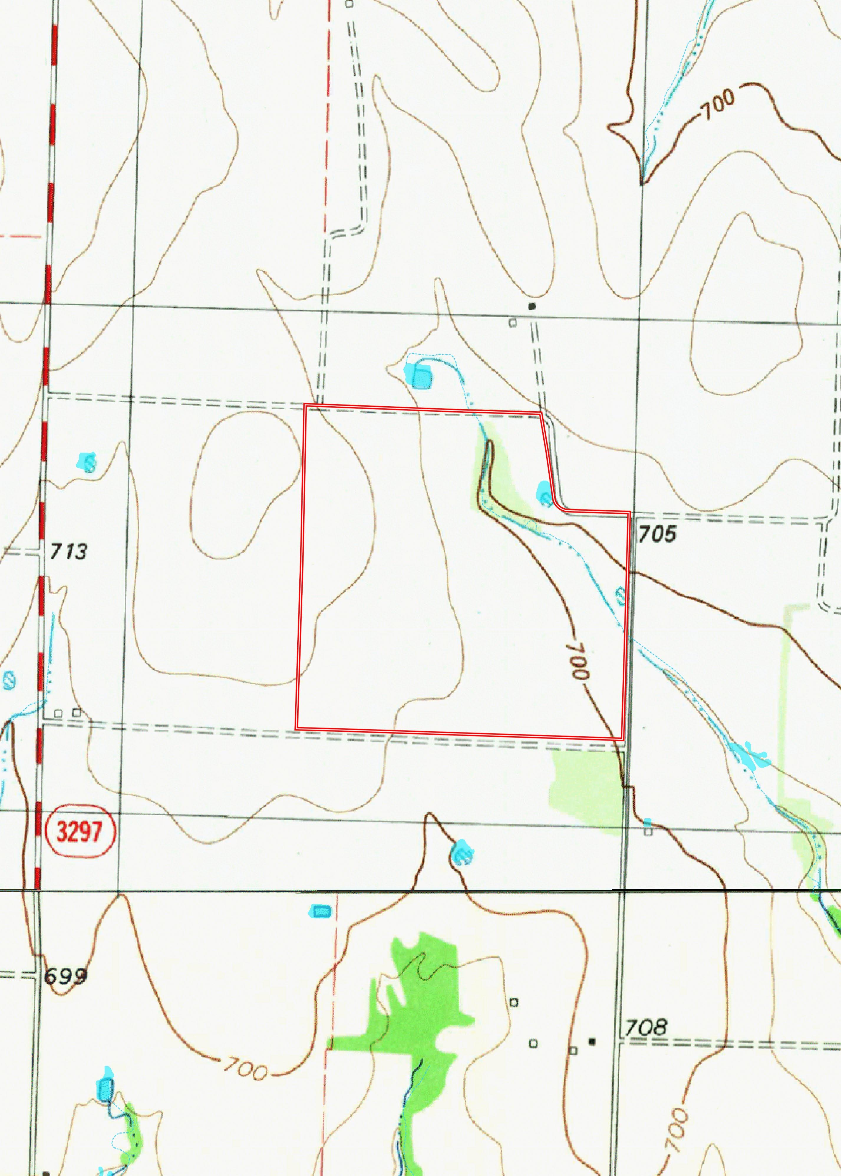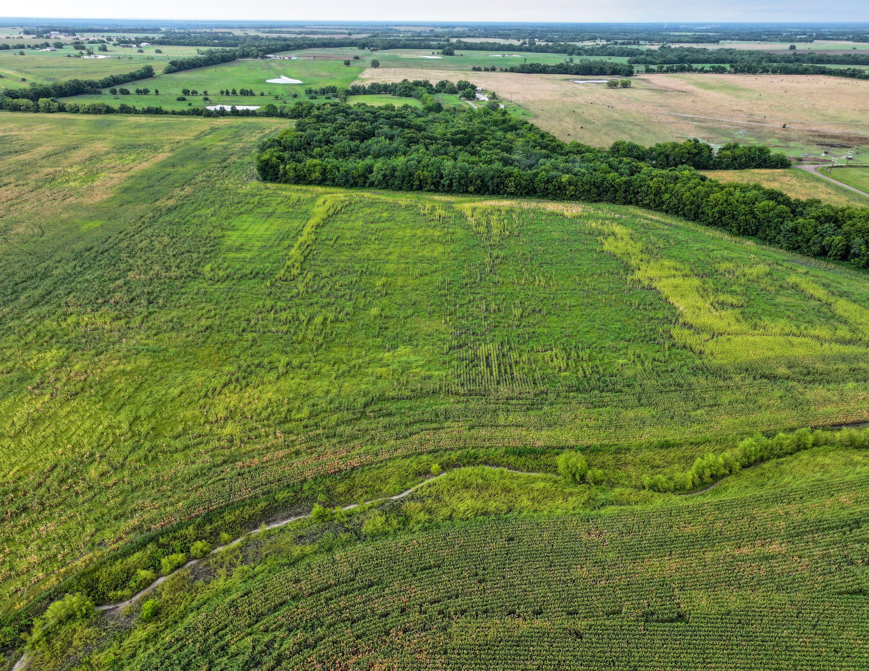 The property has a gently sloping topography with a productive mix of clay loam and silt loam soils with slopes of 1% to 3%. Approximately 79 acres are in cropland. The balance is a 10.5-acre block of mature hardwoods with a wet season creek and pond. These attributes offer enhanced recreational appeal and great habitat for wildlife.