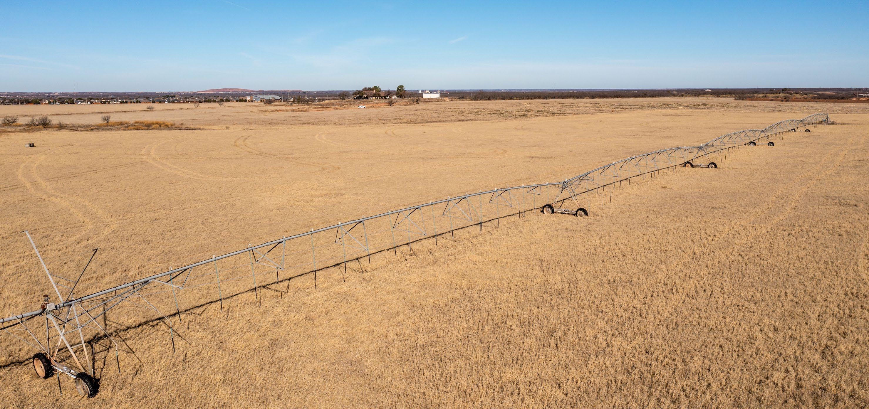 This property is located in a transitional development area with frontage on FM 2833, FM1082, County Roads 503 and 306. This property is comprised of approximately 500 acres of dryland farmland and 610 acres under pivot irrigation, with the remainder being in native pasture. Less than 2% of the property is in a flood plain. Elevations range from approximately 1,660 feet to 1,710 feet above sea level. The Hamby Water Supply has a 4” water line to the property and the city of Abilene waste effluent water provides water for the pivot sprinkler. One existing gas transmission line runs through the property, and a new gas transmission line is under construction. A single pole electric transmission line runs in a north/south direction adjacent to the west boundary of the property. A large electric substation adjoins the northwest corner of the property.
