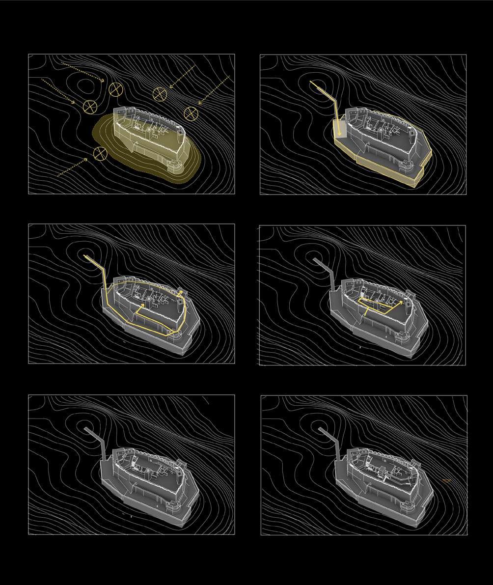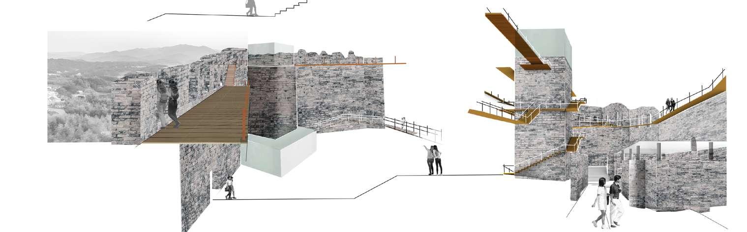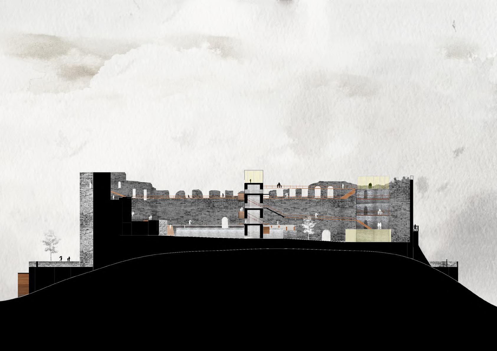 The objective of the project is to transform the ruin into a culural heritage park serving both the locals and tourists, without interfering the curent facade of the casle ruin. In order to achieve this goal, several conflicts berveen the space of ancien fortress and that of modern park need to be resolved.