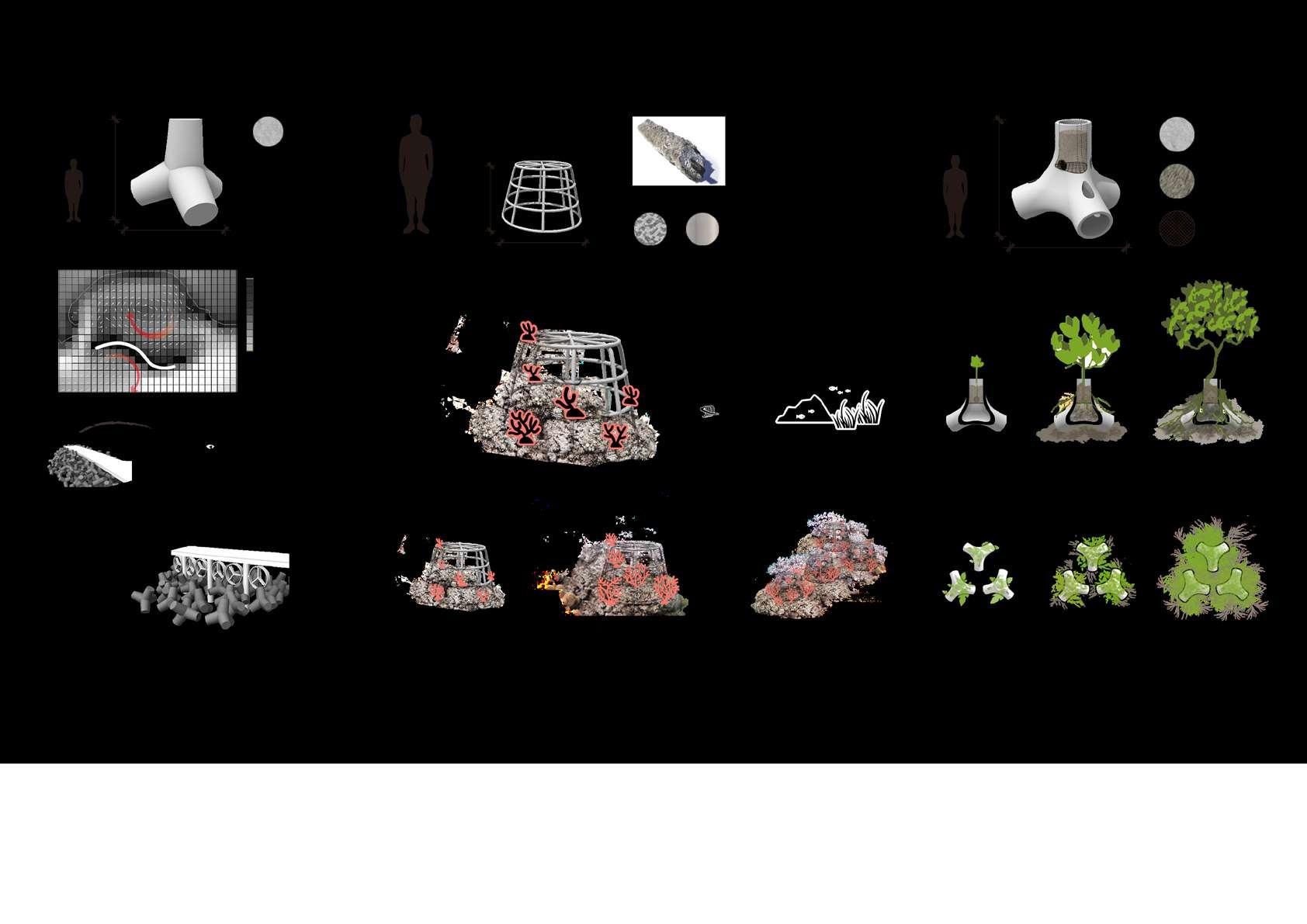 To do this, we have built breakwaters to relieve waves at sea (Biorock technology will help stabilize corals),fIoating trails that carry ecotourism (large amounts of coral frames are put in), and mangrove islands that purify pollution on the shore, among which Mangroves-corals-seagrass forms a more robust ecosystem to promote coral recovery.
