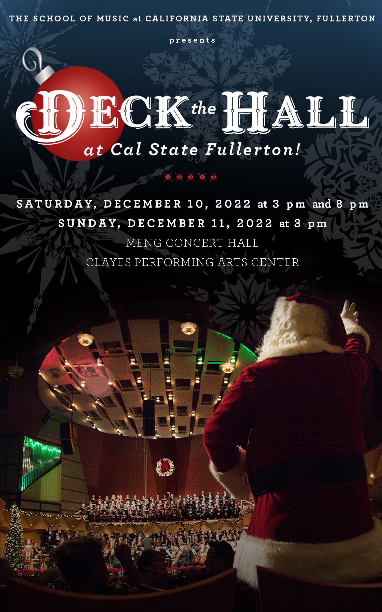 I’d like to extend a warm welcome to all of you joining us for Deck the Hall at Cal State Fullerton!, now celebrating its twelfth year of holiday cheer. Incredibly, more than 1,800 guests will visit this beautiful hall to kick off the holidays with friends and family. We are so happy to have you here.