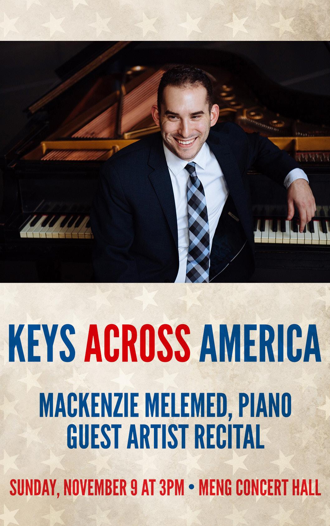 Keys Across America is the largest tour of American piano music in recent history, launched by internationally renowned classical pianist Mackenzie Melemed. His educational project, featuring recitals and masterclasses, celebrates USA 250 with music spanning 150+ years of creative output, exploring the history of America’s most influential composers. The program also features two new works written especially for Mackenzie Melemed by American composers Laura Kaminsky and Avner Dorman.