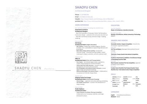 Phone: +1 3479082385 Email: sc5133@columbia.edu linkedln: https://www.linkedin.com/in/shaoyu-chen-b70814261/ portfolio link: https://issuu.com/csyyy/docs/portfolio_shaoyu_chen_march_2025_