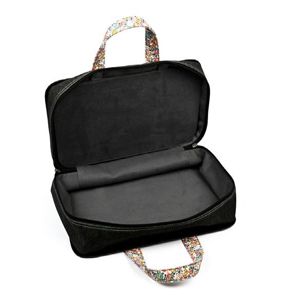 Avec doublure intérieure. Intérieur avec poches pour accessoires et organisateur d’aiguilles et boucle de fil.