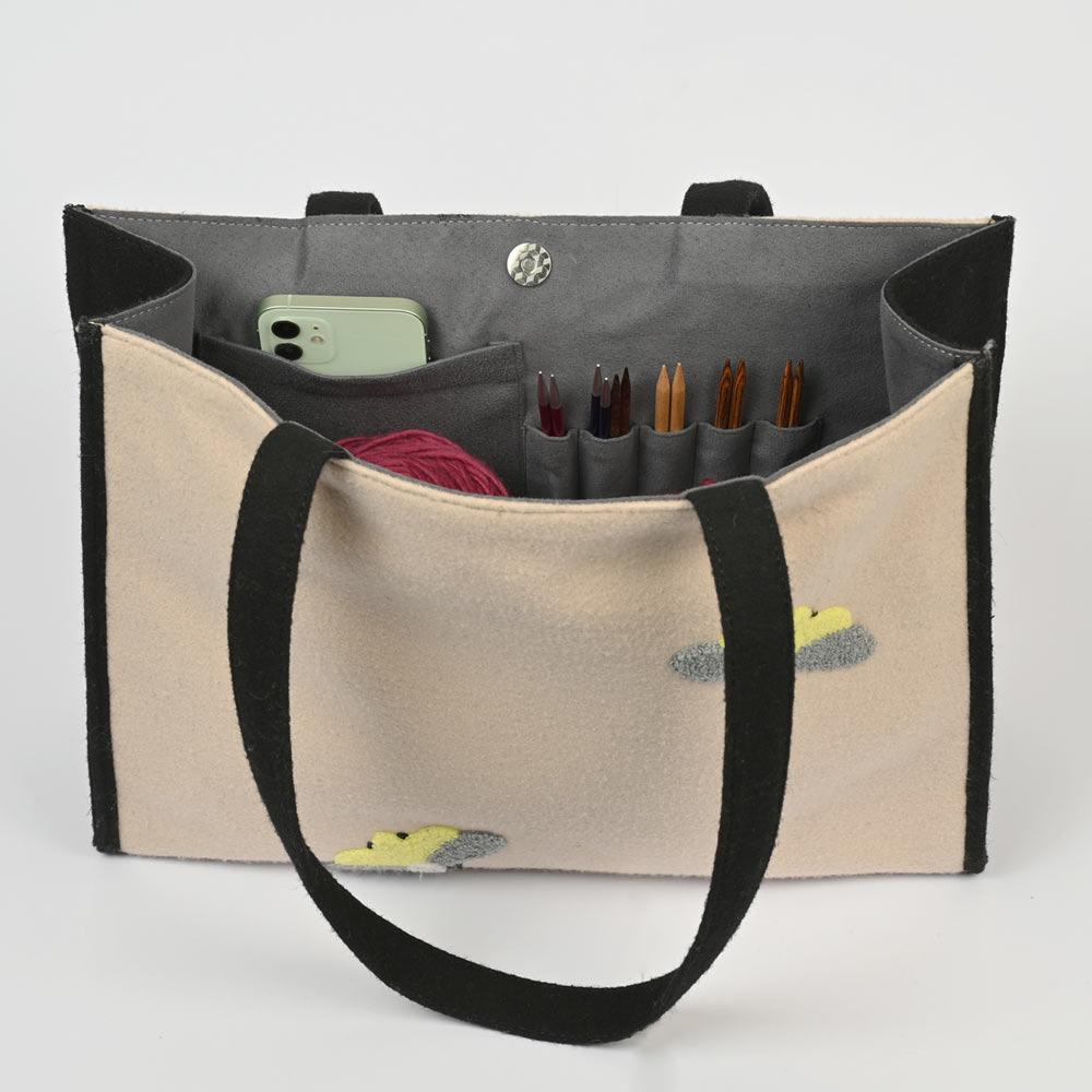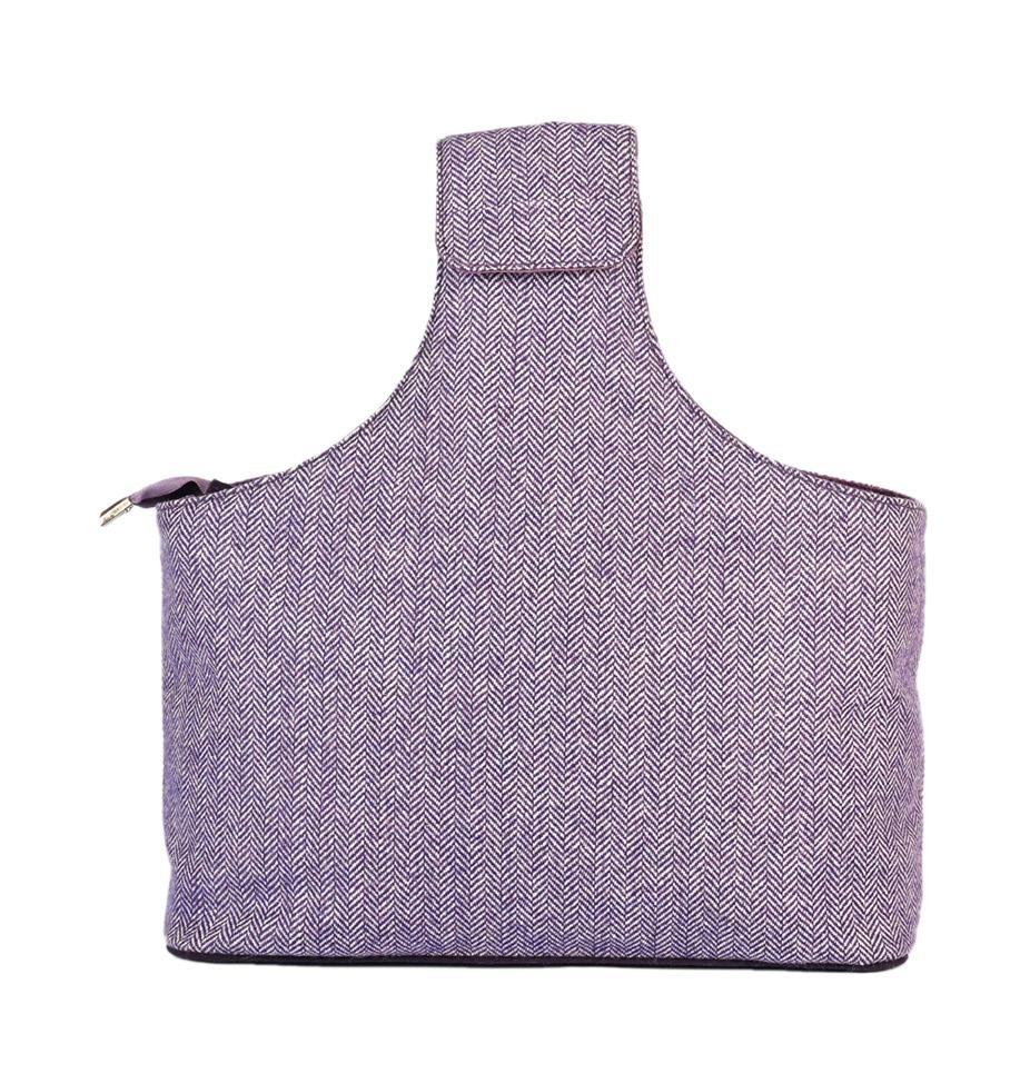 Bolsa para labores fabricada en tejido tweed de lana y fieltro. Forro símil ante.