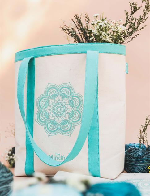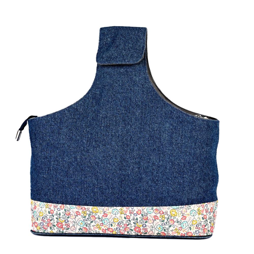 Bolsa para labores de gran capacidad fabricada en denim y algodón de estampado floral. Con forro interior.