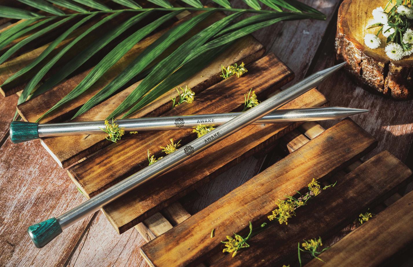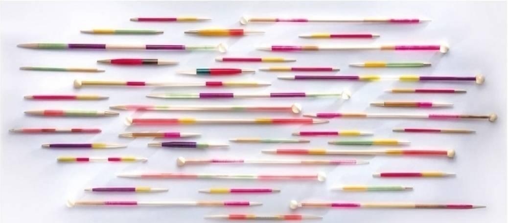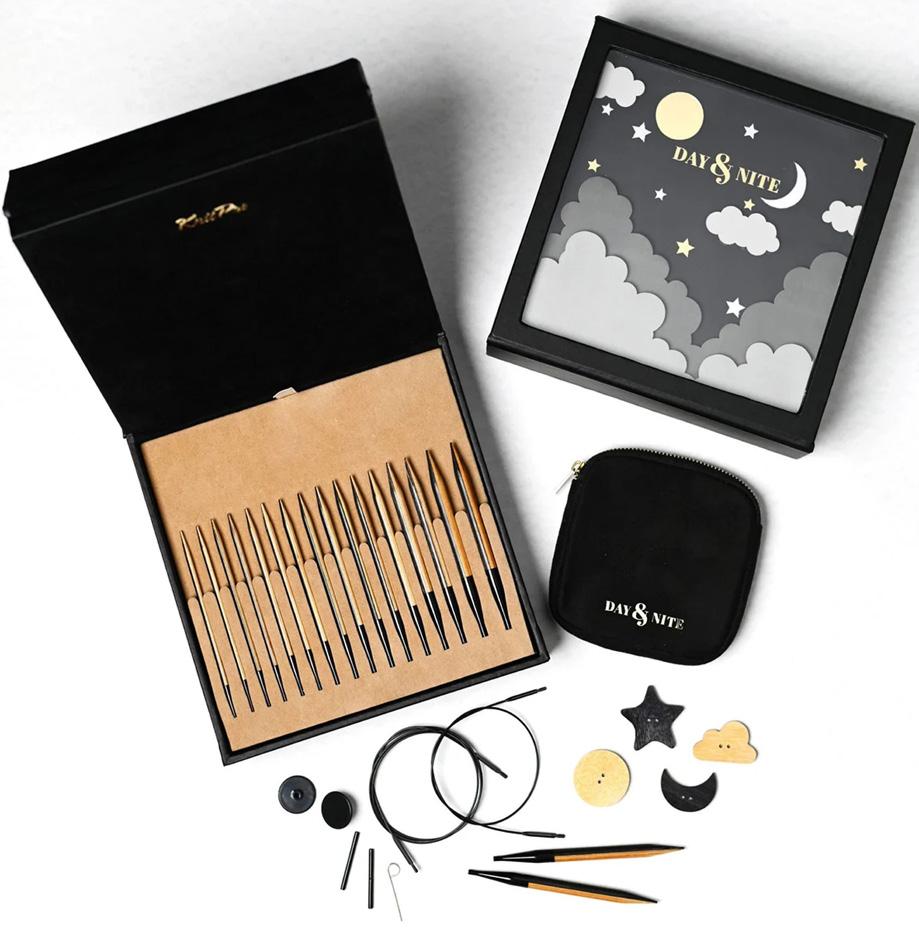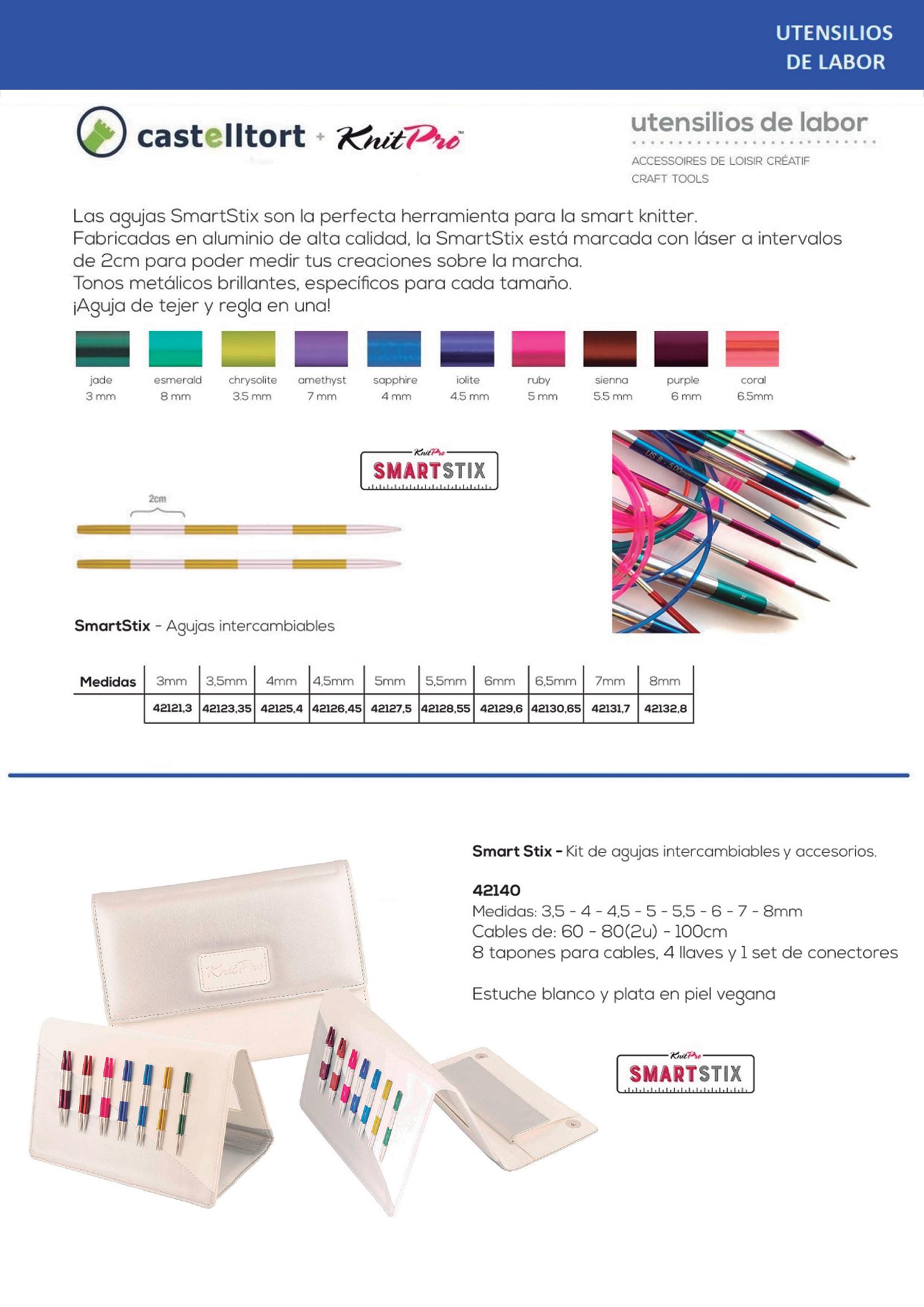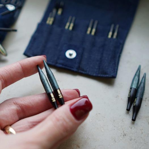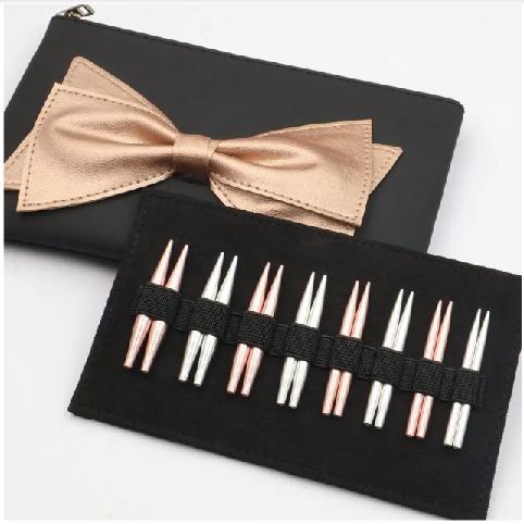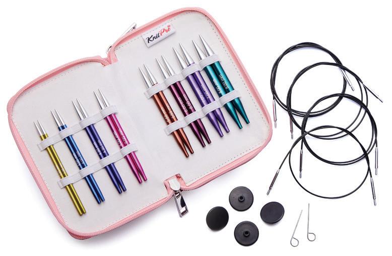 Con departamento para agujas rectas e intercambiables y accesorios.