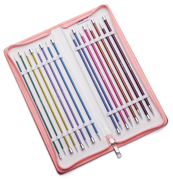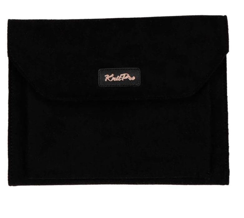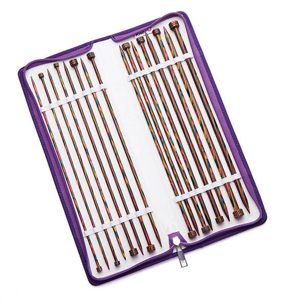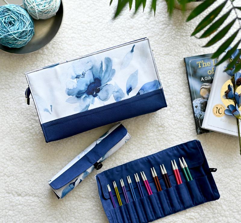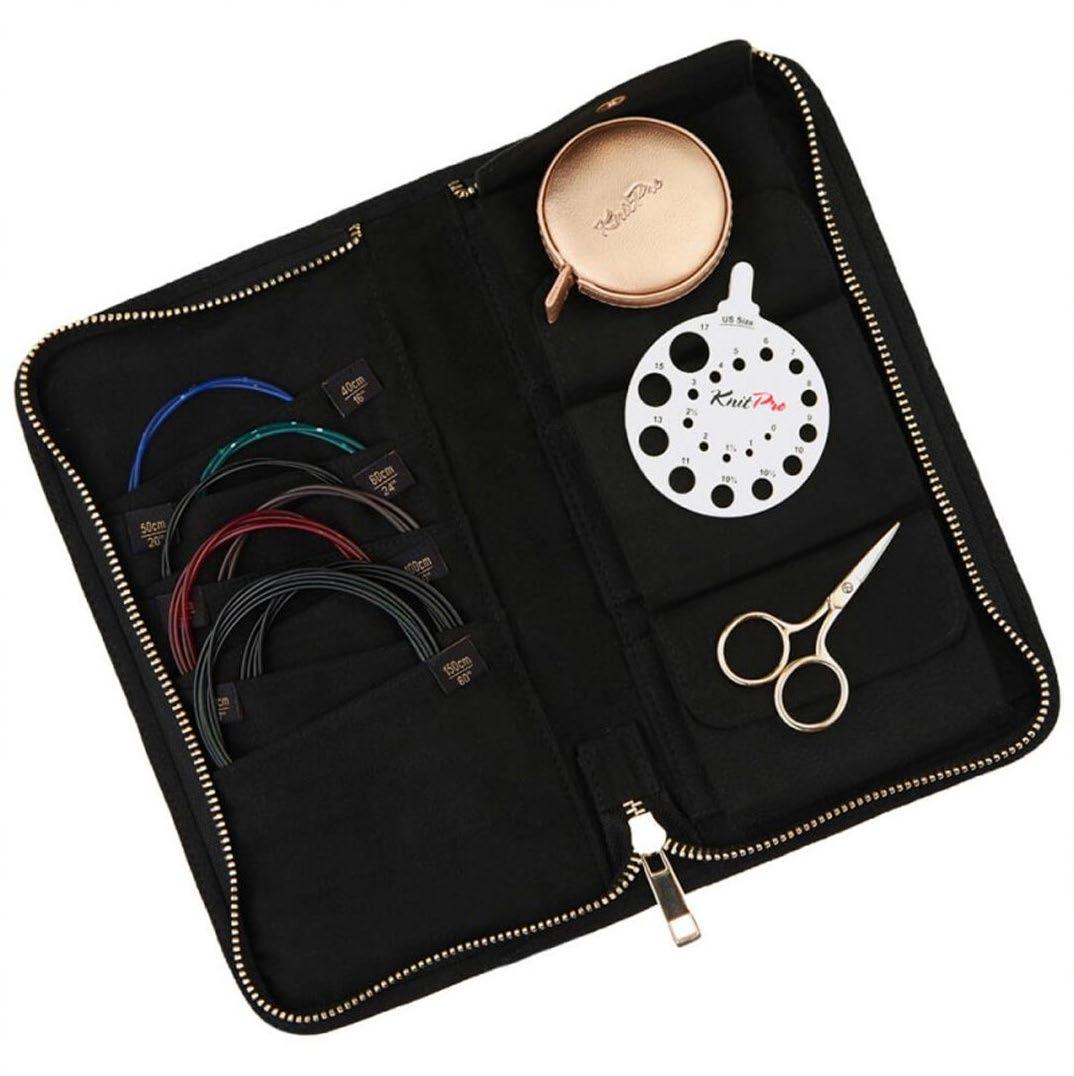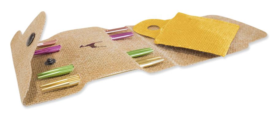 Etui pour aiguilles circulaires fixes d’une capacité de 22 paires. Avec doublure et poche intérieure zippée pour accessoires. (16x24.5cm)