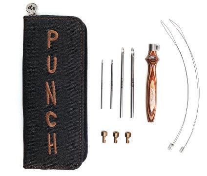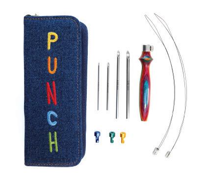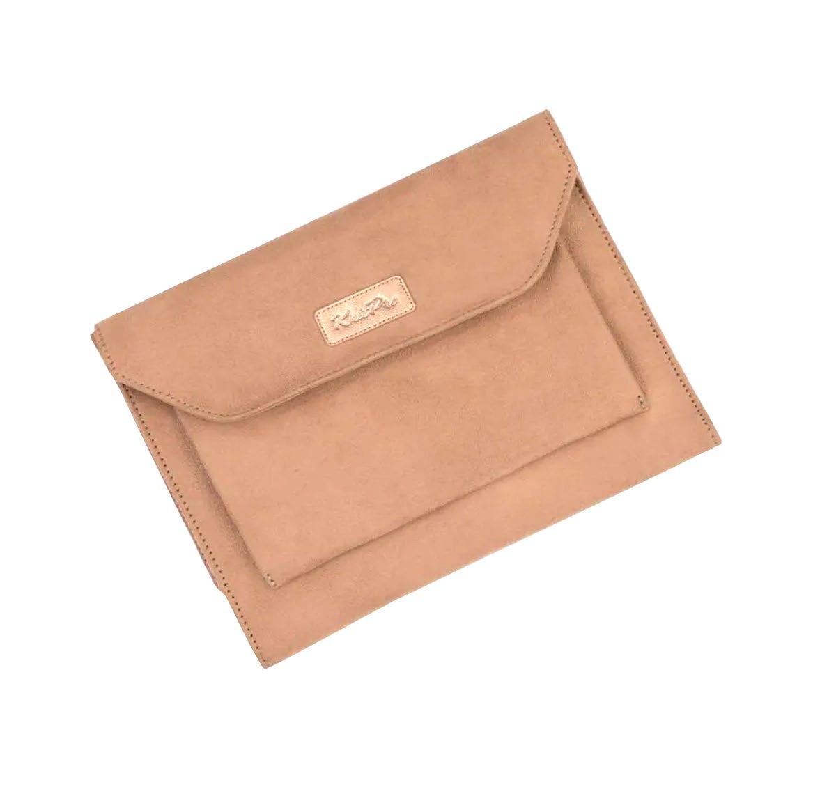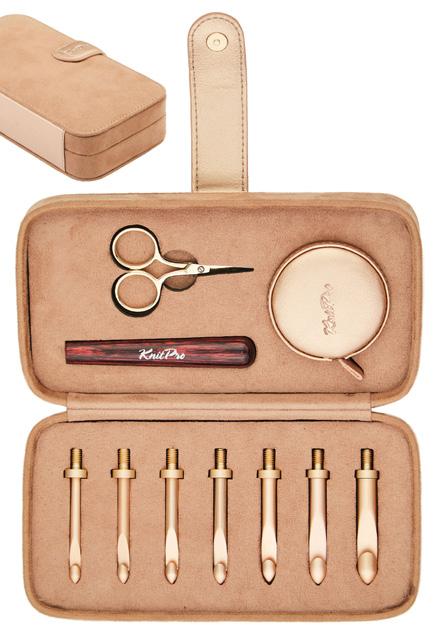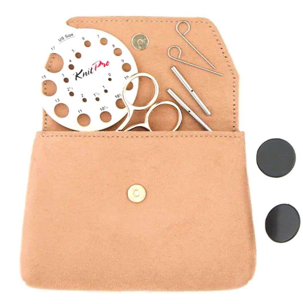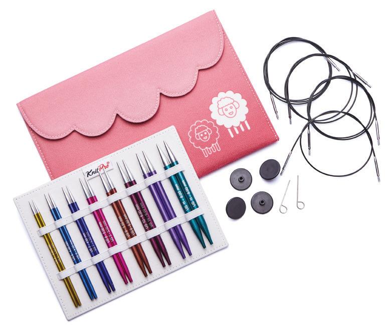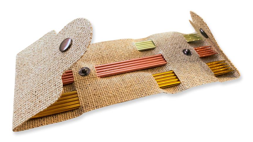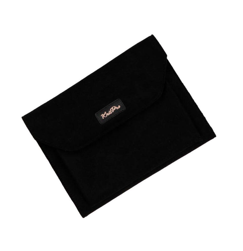 Etui pour aiguilles circulaires fixes d’une capacité de 22 paires. Avec doublure et poche intérieure zippée pour accessoires. (16x24.5cm)