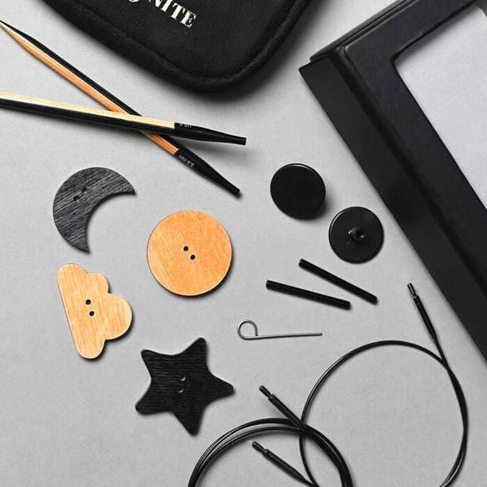 Avec organisateur pour aiguilles droites et interchangeables et accessoires.