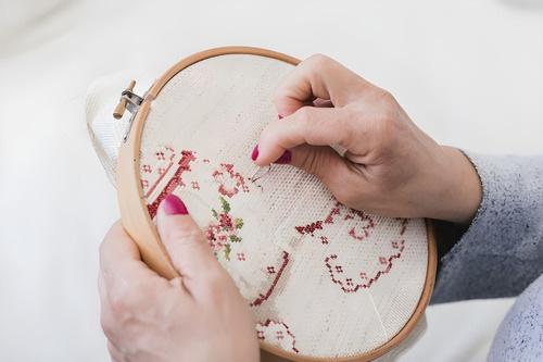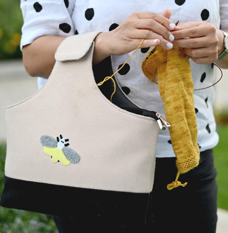 Bolsa para labores bordada fabricada en fieltro de lana.