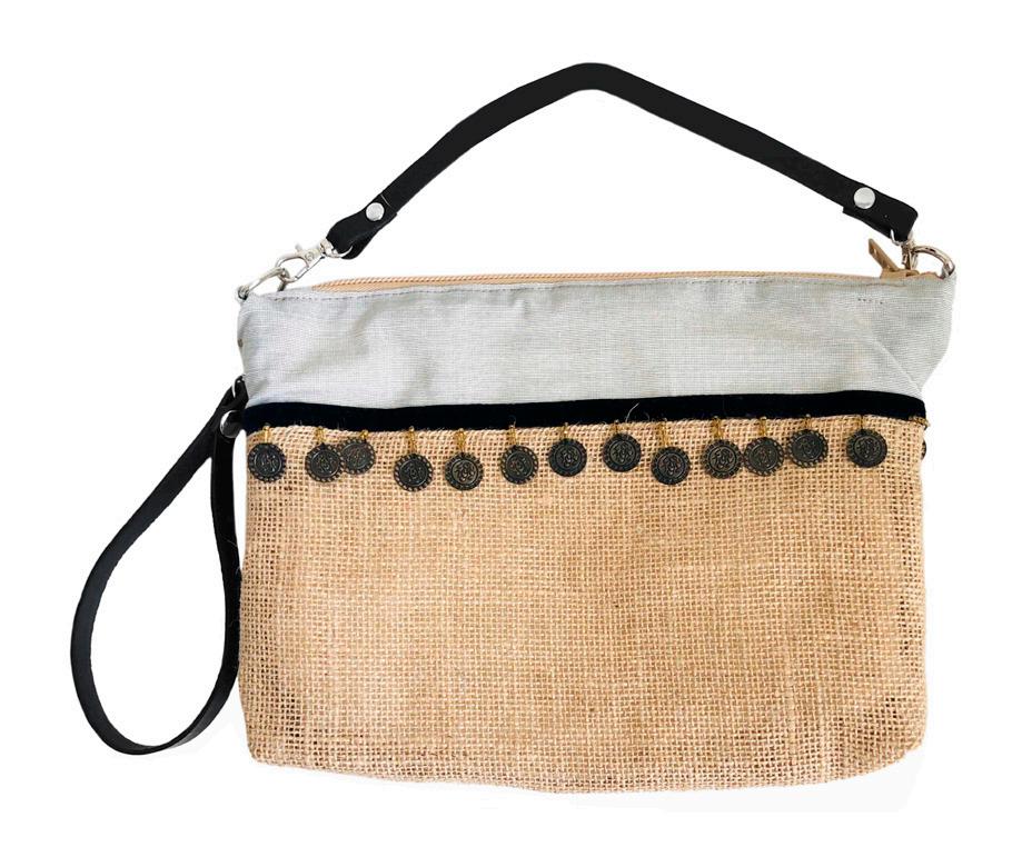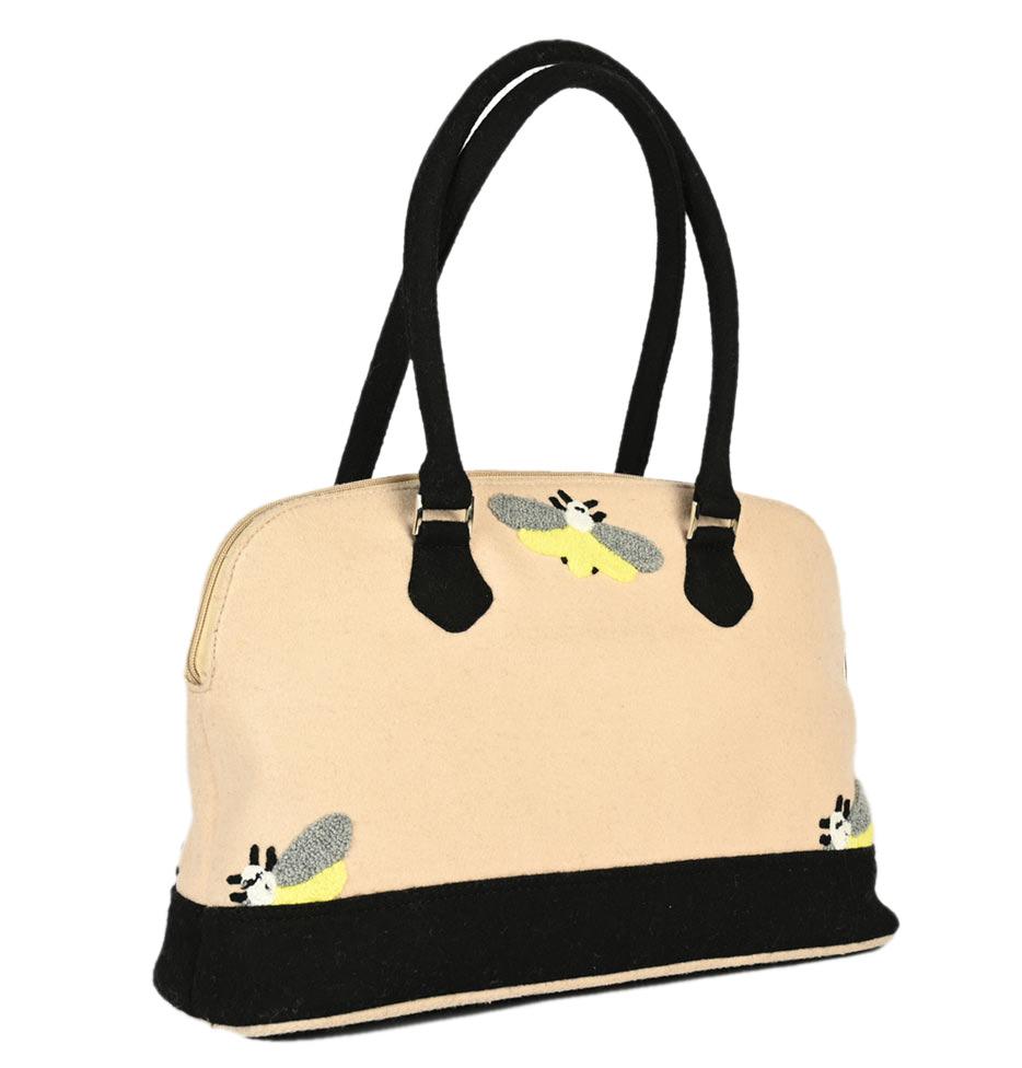 Bolsa de mano bordada fabricada en fieltro de lana.