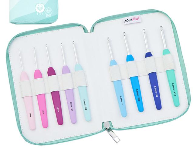 Estuche para agujas circulares fijas con capacidad para 22 pares. Con forro y bolsillo interior ,con cremallera para accesorios. (16x24.5cm)
