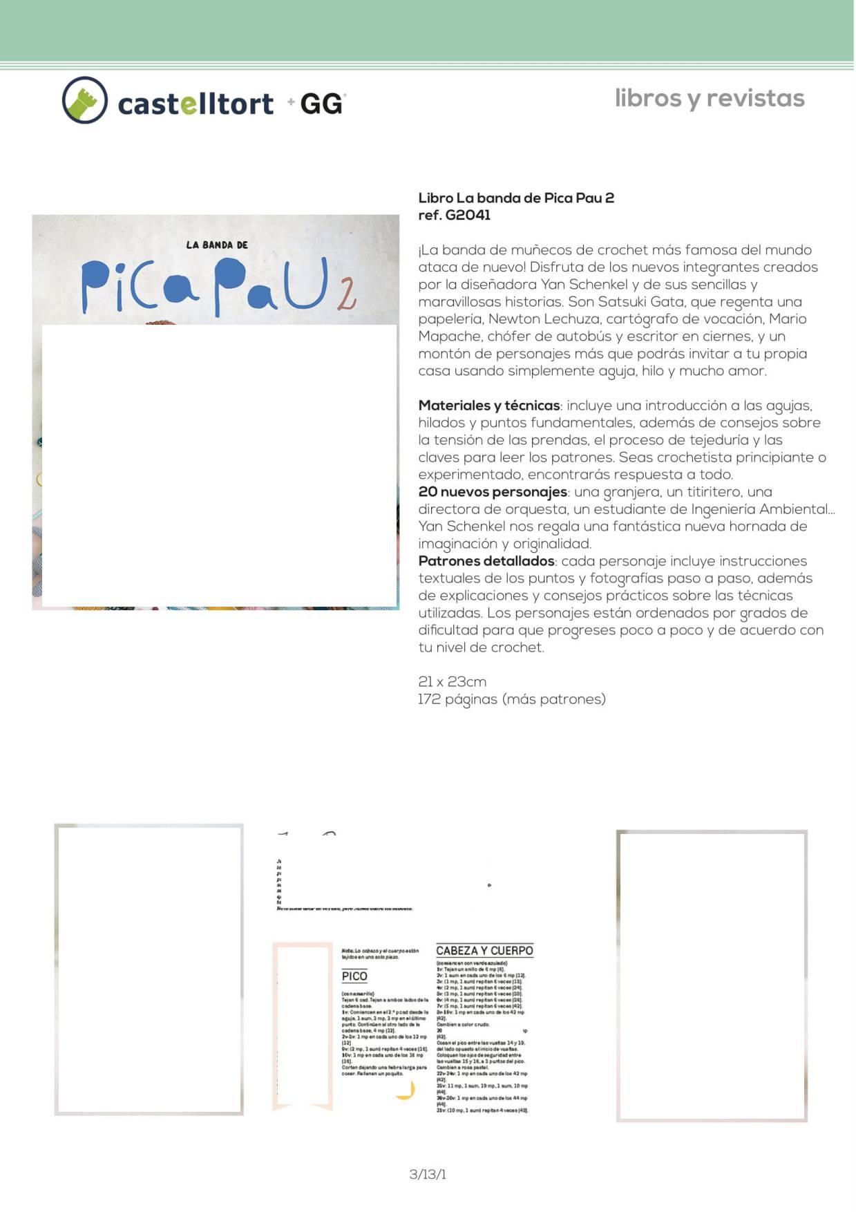 El nuevo libro de la banda de muñecos de crochet más famosa ¡Tienes en tus manos el libro para recrear a los personajes de la banda de crochet más famosa y divertida! Sus protagonistas son Pedro Von Dito Cerdito, Audrey Gacela, Hugo Murciélago, Gertrudis Dragona y los demás integrantes de Pica Pau inventados por Yan Schenkel, la diseñadora de personajes más ingeniosa y ocurrente del mundo craft.