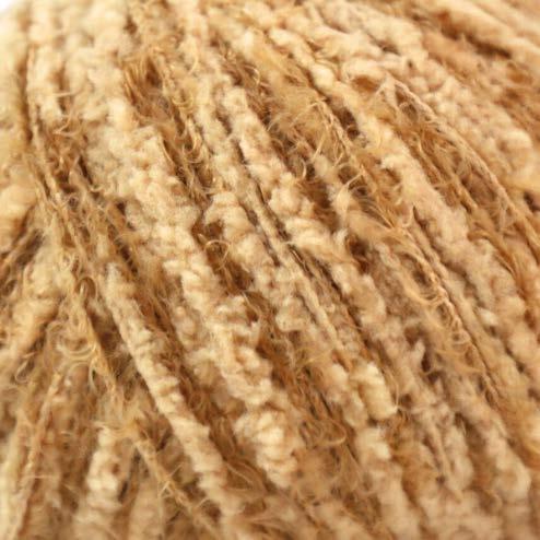 Este hilo está construido con pequeños nudos de lúrex intermitentes en oro o plata que asoman delicadamente en el tejido. Su combinación con otras calidades realza las prendas, aportando un toque de elegancia y lujo.