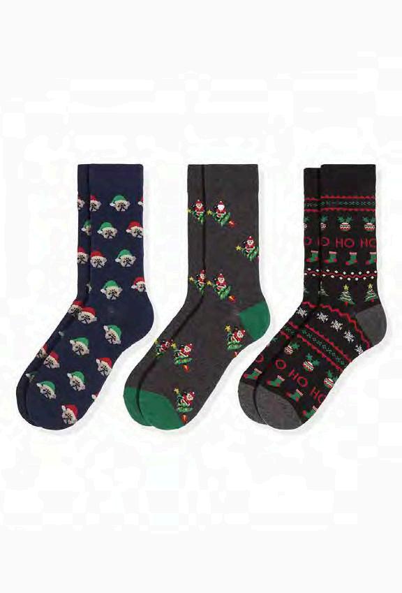 Caja de Música + 3 ParesdeCalcetinesHombreNavidad Venta unitaria. Fantasía Algodón TallaÚnica:40/45