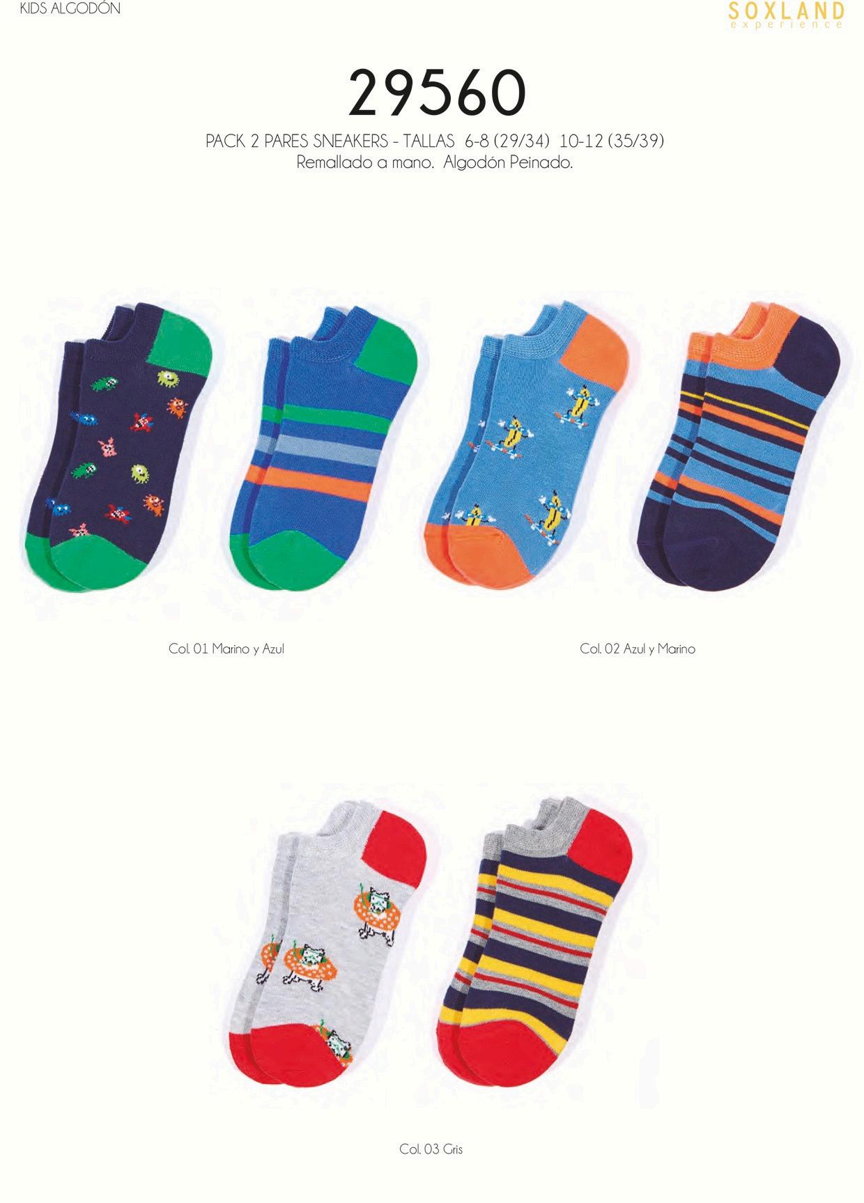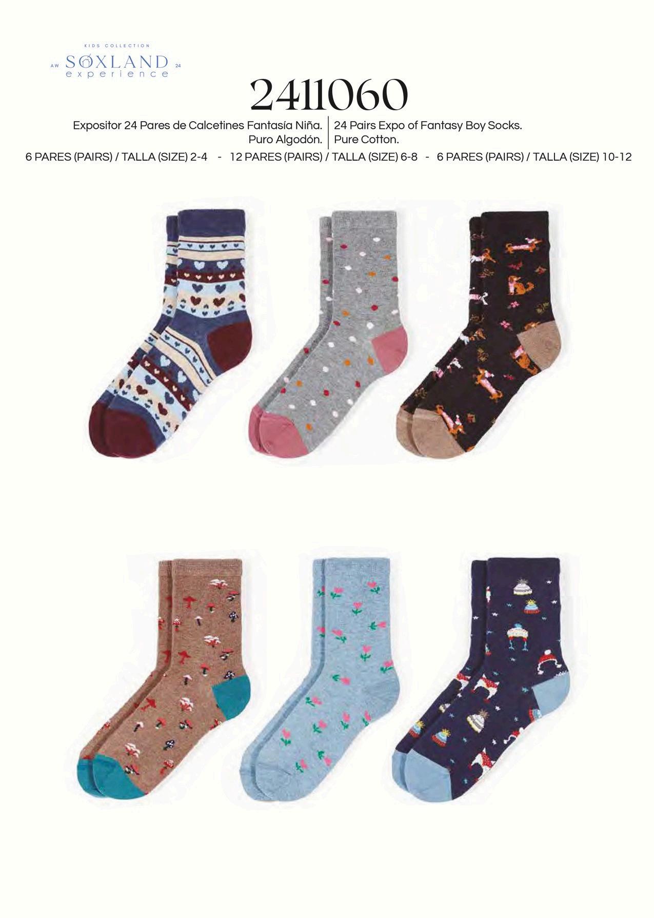 Pack 2 pares calcetín fantasía niño Expositor 24 pares Tallas: 2-4 (23/28) 6-8 (29/34). 10/12 (35/39) 75% algodón 23% poliamida 2% elastano