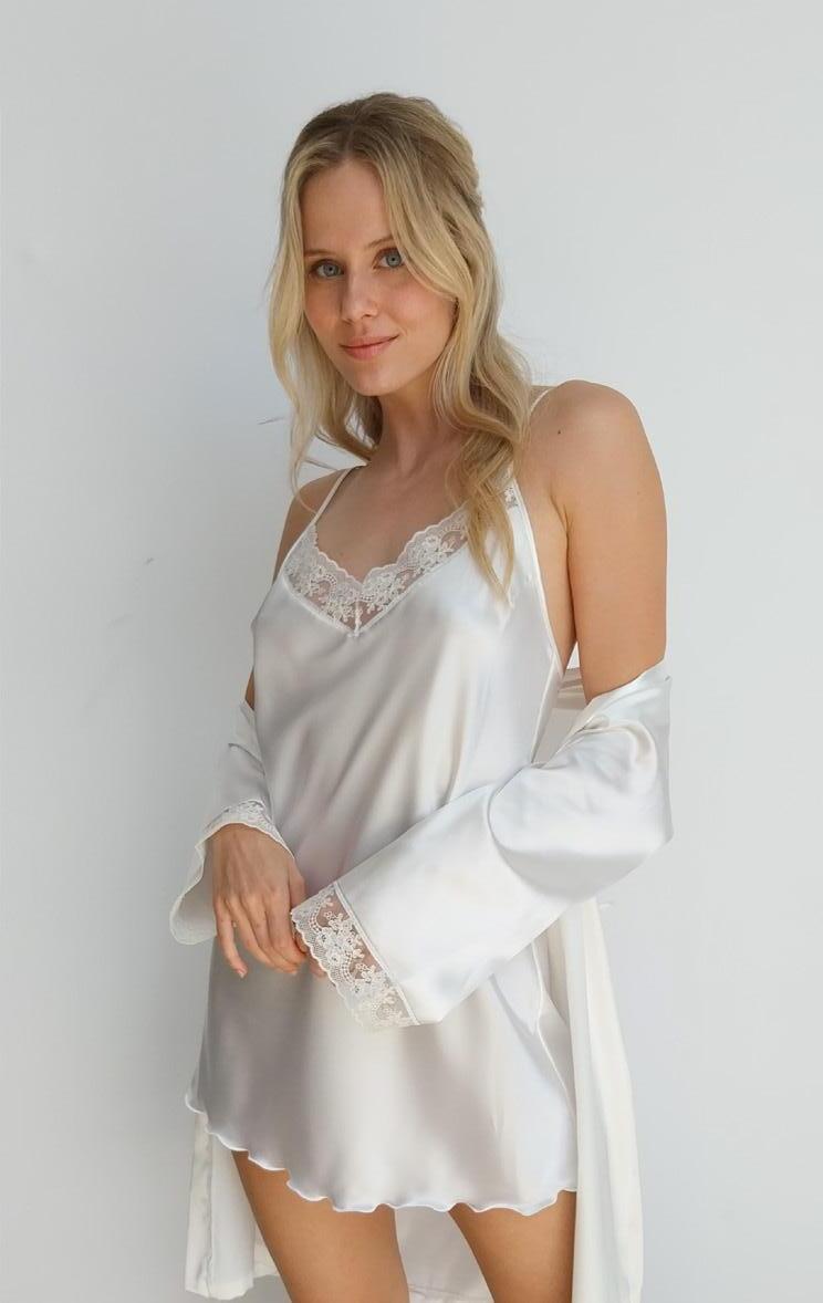 CAMISÓN CORTO SATÉN BORDADO