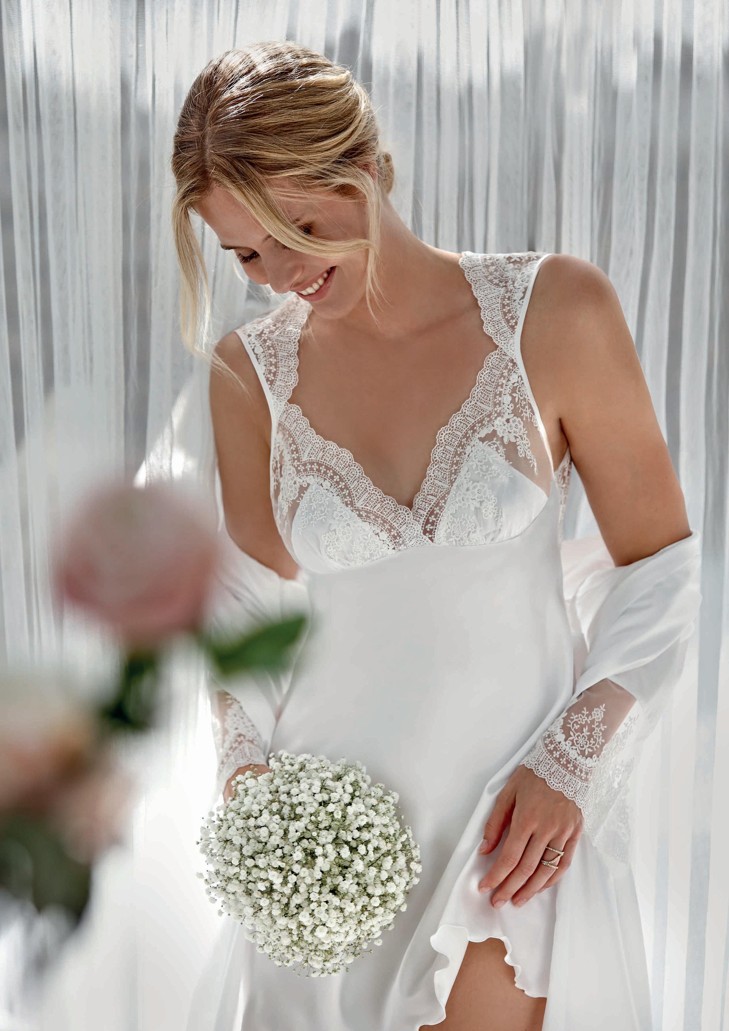 Un conjunto de lencería para novias que encarna el estilo coqueto y juguetón. Cada pieza de Sabela está diseñada para resaltar la feminidad y el encanto de la novia, añadiendo un toque de seducción a su día especial.