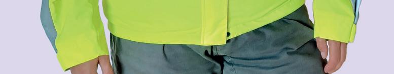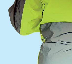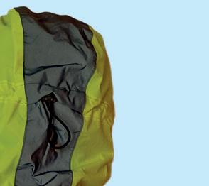 I FOUND THIS jacket very baggy. There is a waist cinch, but even using that it’s voluminous and it filled with wind while riding. There is a hood, with adjusters, which will fit under or over a helmet. Good-length pit zips help with ventilation, and there are two reasonably sized, zipped hip pockets. The reflective bands go round the hem, the waist and the wrists so visibility isn’t quite as good as the other jackets, but the key areas are covered. The wrists are loosely elasticated so let water creep up your arms more than the others on test. Sizes 6-16/18. Waterproofing & breathability: 15k/not quoted.