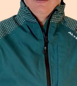 THIS COMES IN several colourways, with plenty of reflective detailing on the arms although not all the way across the back. While there is no hood, there is a cinch at the neck and the sleeve cuffs have Velcro for easy adjustment. There are two decent-sized hip pockets with zips, a zipped chest pocket that won’t take a phone, plus a rear pocket that will. There’s a vent across the back and some strangely short pit zips. The bottom of the jacket has a slightly dropped tail and another cinch. Fit was pretty true to size, with the arms a decent length for cycling. It feels substantial enough to last. Sizes: 8-18. Waterproofing & breathability: 10k/10k.