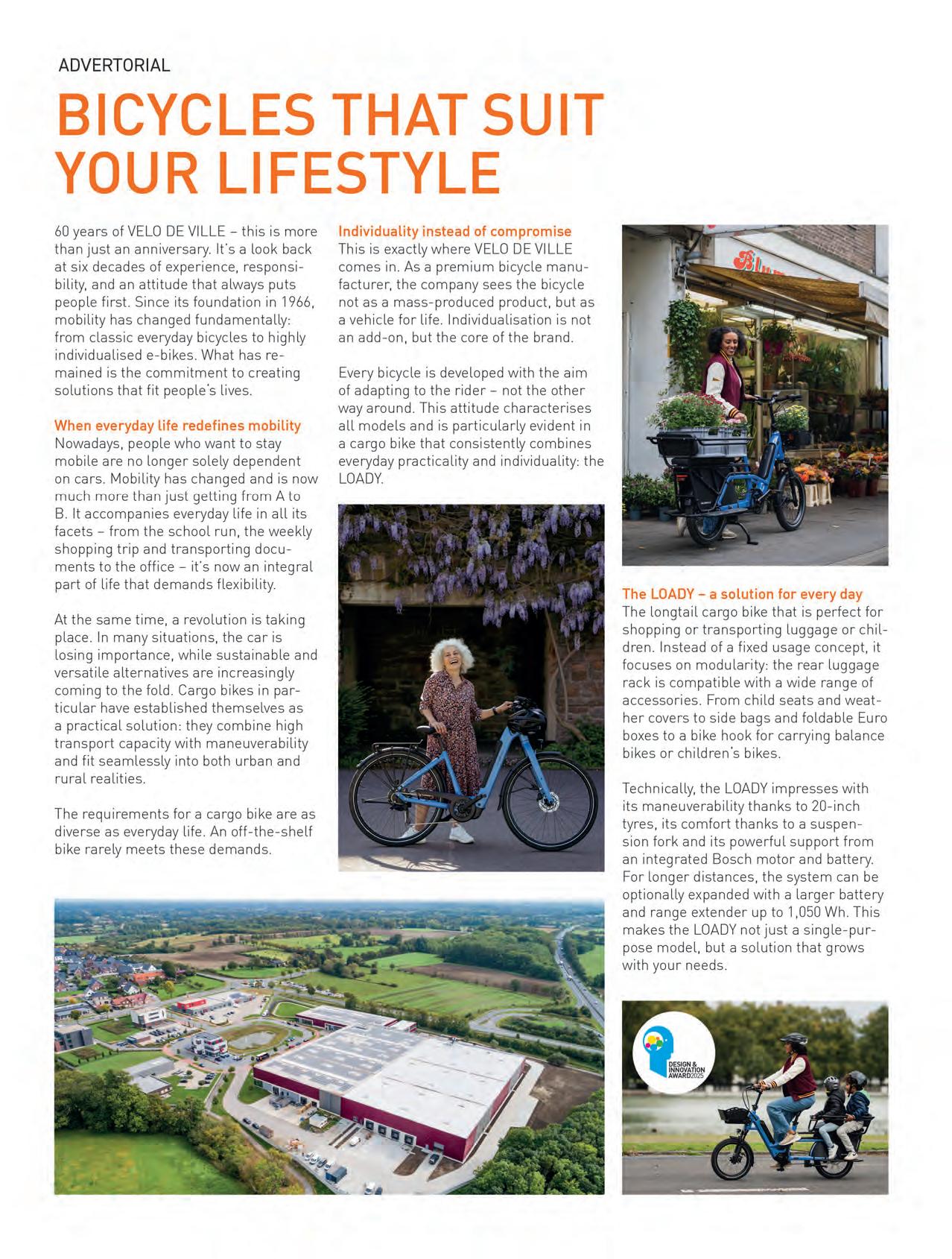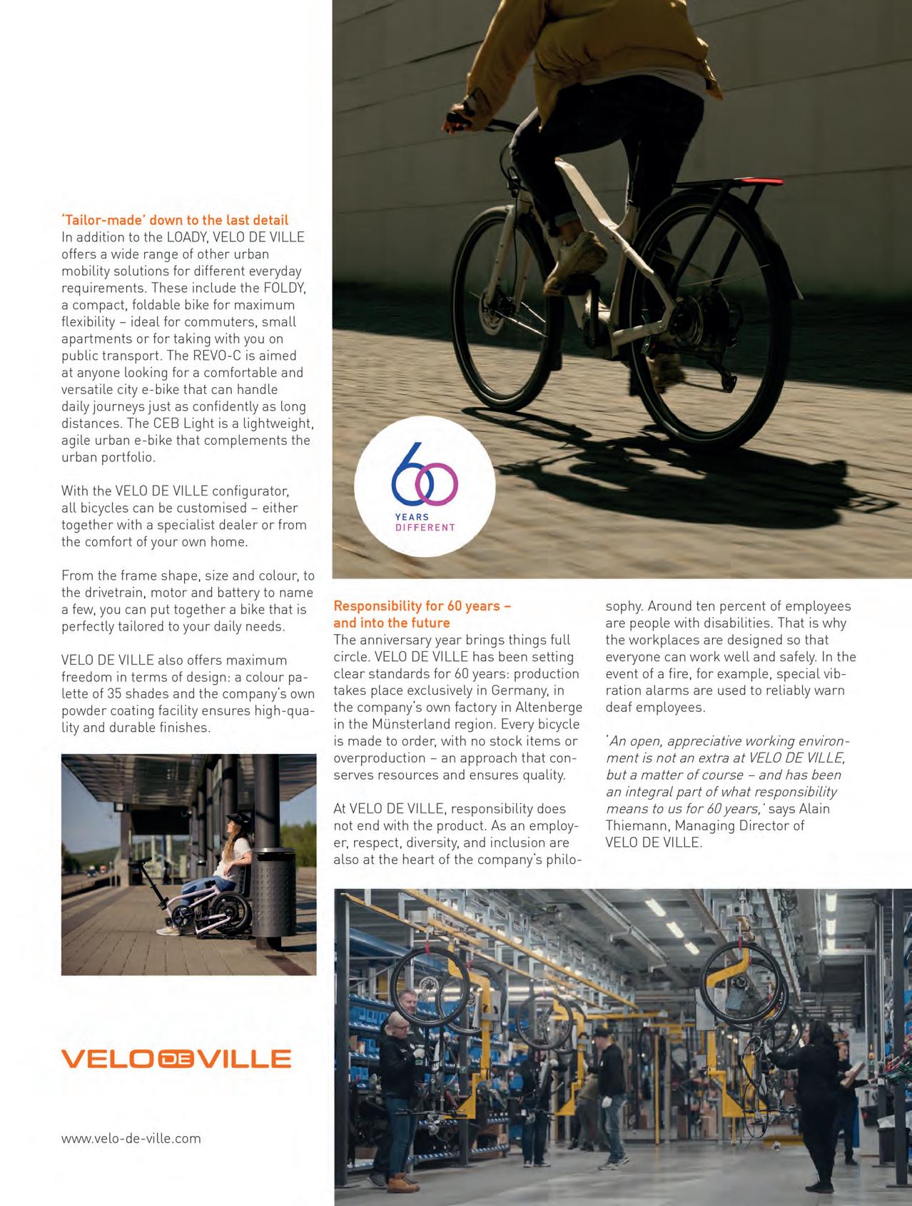 This German folder won a Design and Innovation Award 2025. It’s available unpowered (from £1,569 and 13kg) and electric-assist (from £2,619 and 17kg). Both fold to 110×61.5×39.9cm. With a 1,055mm wheelbase, 55−305 tyres and a trail figure of 61mm, it should be a stable-handling small wheeler. velo-de-ville.com/en
