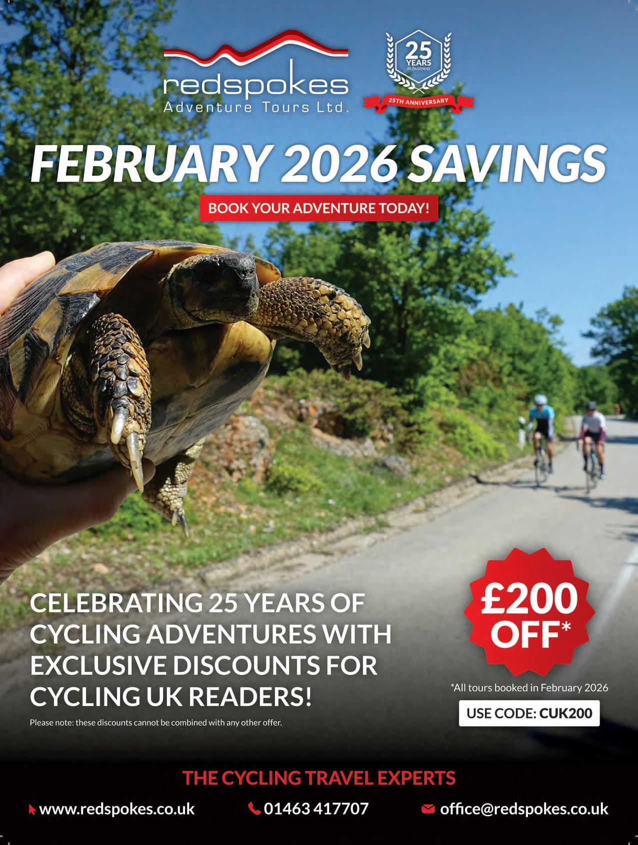 Cycle is copyright Cycling UK, James Pembroke Media, and individual contributors. Reproduction in whole or in part without permission from Cycling UK and James Pembroke Media is forbidden. Views expressed in the magazine are those of the individual contributors and do not necessarily reflect those of the editor or the policies of Cycling UK. Advertising bookings are subject to availability, the terms and conditions of James Pembroke Media, and final approval by Cycling UK.
