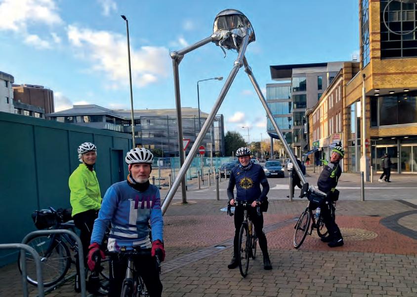 The Wey Navigation took us into London, where we had a 20km ride on quiet back streets, riverside paths and through two royal parks to reach our hotel in Wandsworth. We passed through Putney, where The War of the Worlds narrator meets the Artilleryman; it’s also a location in Wells’s cycling novel, Wheels of Chance (see cyclinguk.org/ wheels-of-chance).