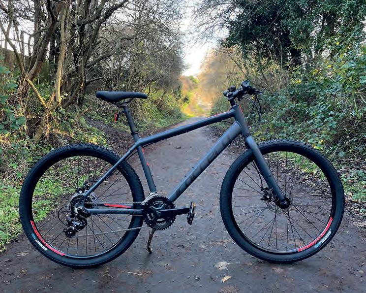 The plain, non-X Roadfinder will accept 45mm wide tyres and a double road chainset but is not optimised for an MTB chainset. That will have wider axle formatting and a chainline offset some 2.5mm to the outside compared to a road chainset, but you may achieve acceptable performance with a little finagling. If you can find old Shimano 105 triple dualcontrol levers, they will work with road cable pull mechanical disc callipers. How about non-indexed dual-control shifting? I reviewed the Growtac Equal Control Levers last issue.