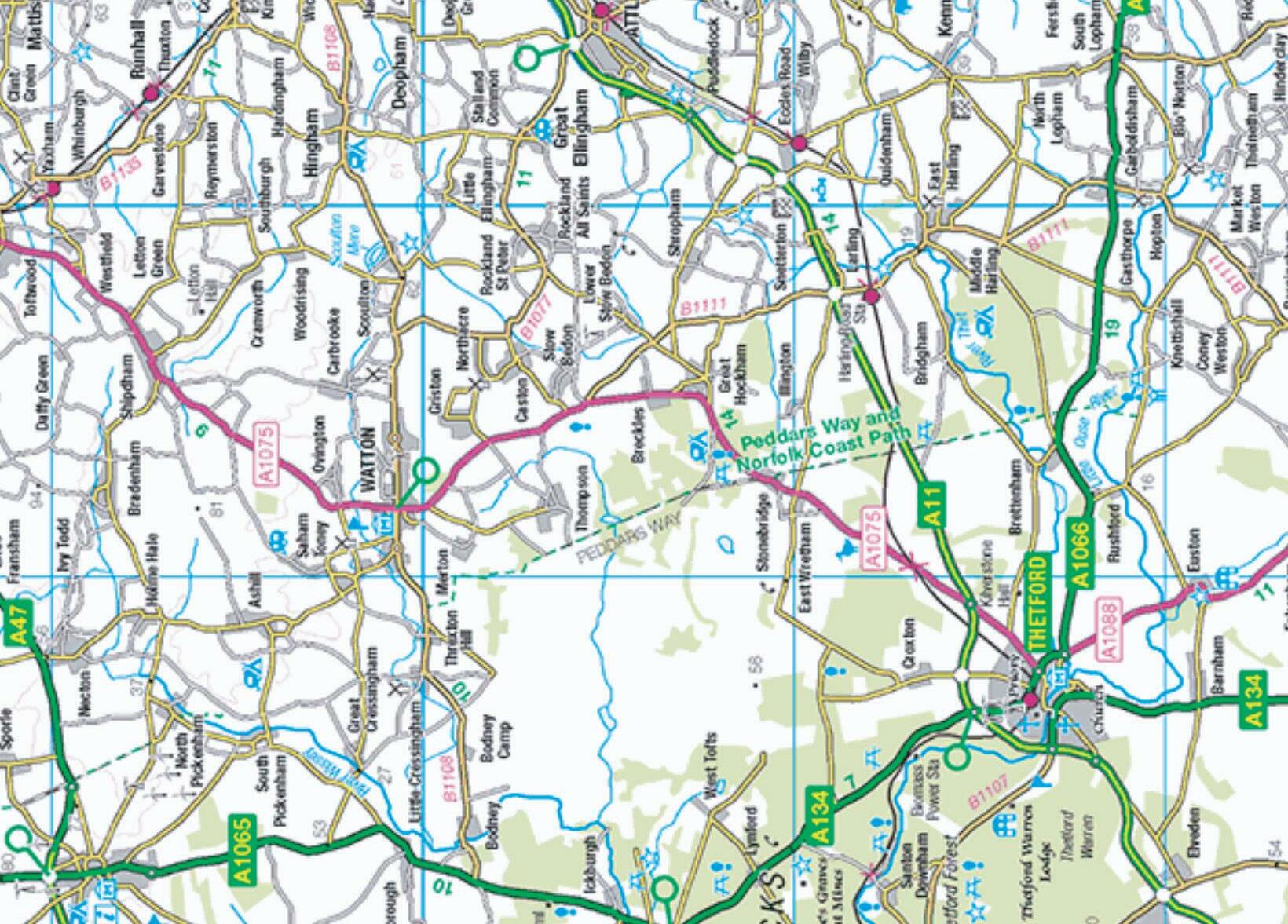 Fakenham sits on a rise in the more rolling coastal landscape that typifies north Norfolk, so while you won’t climb over 85m above sea level at any point on these rides, there’s definitely more rise and fall than in areas like the Broads.