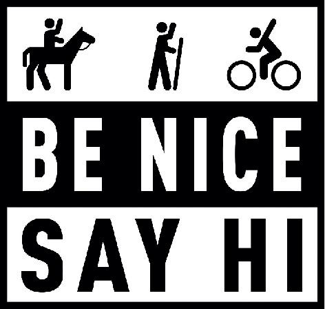 • Say ‘hi’ and slow down when approaching other trail users, and stop if necessary Take special care to avoid startling horses – ask the rider if it’s all right for you to pass
