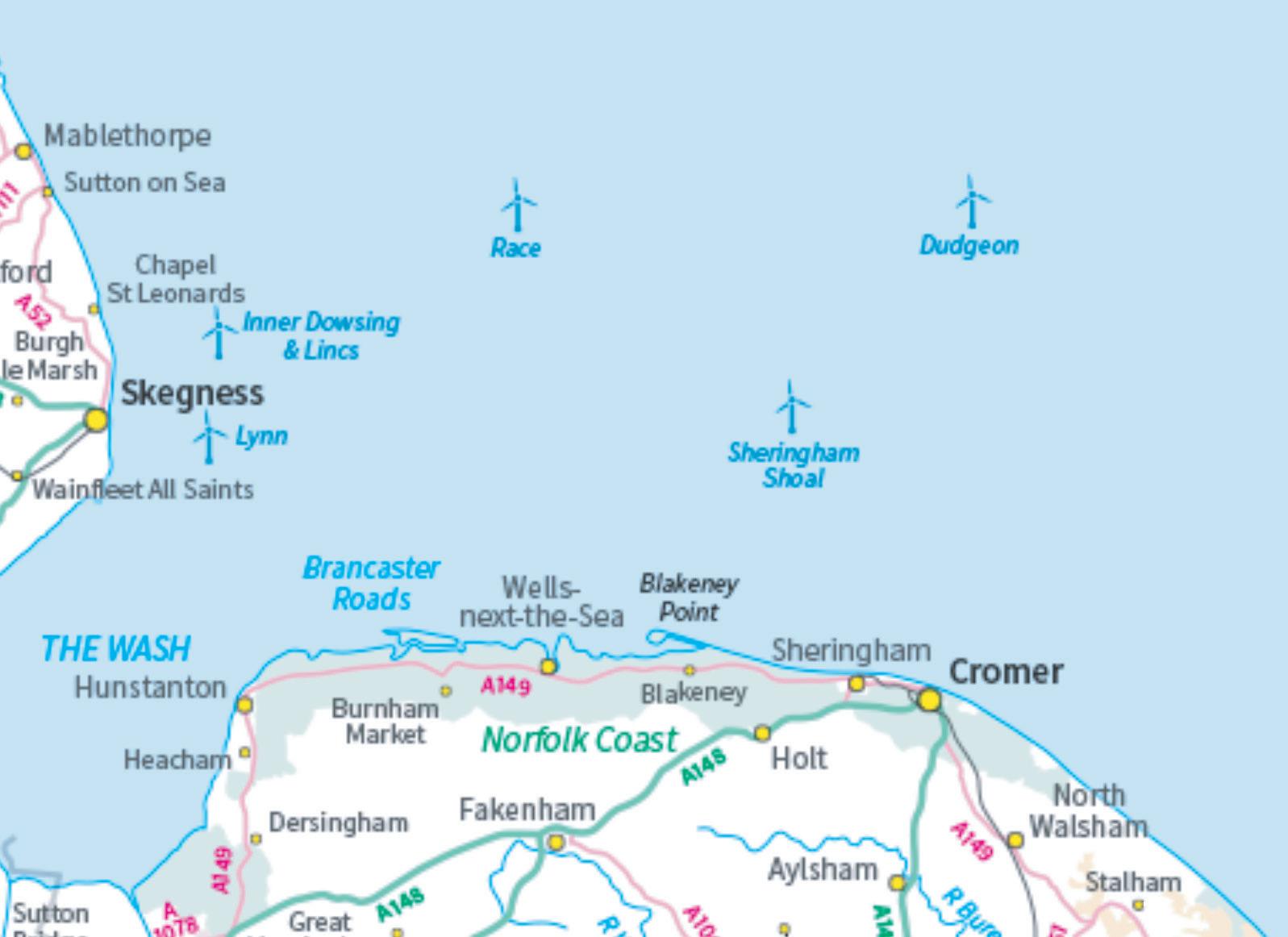 – 75km per day Distance from start (km) Thetford 79 King’s Lynn 168 Wells-next-the-Sea 239 Cromer 307 Five