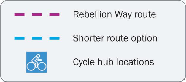 locations Rebellion Way route Shorter route option Cycle hub locations