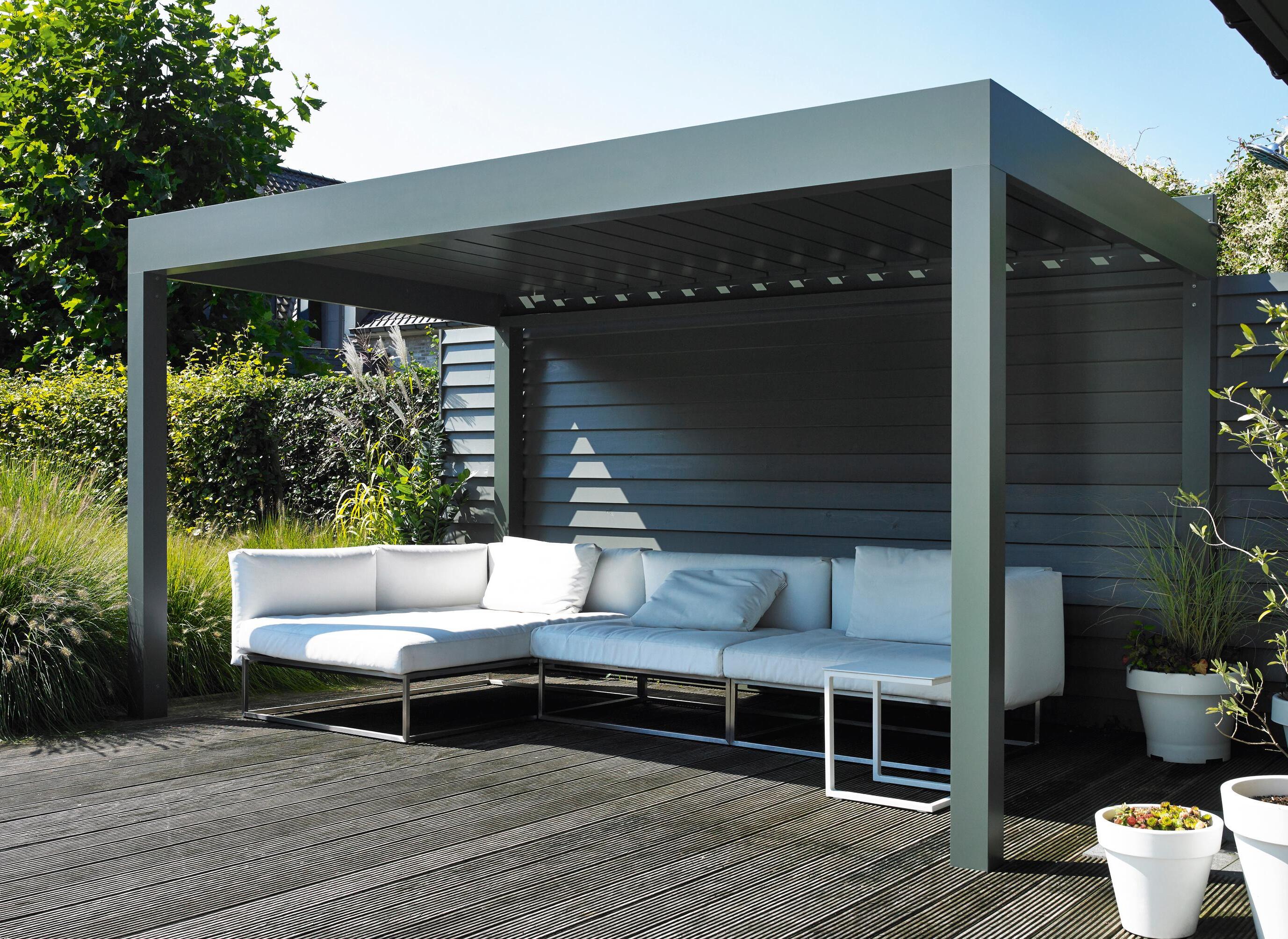 Adjust the louvres up to 150° for ideal shade and ventilation, while the integrated water drainage system ensures controlled water flow Enhance your pergola with cosy outdoor curtains, sun and windresistant screens, and even a music or heating system to create your ultimate sanctuary of relaxation.