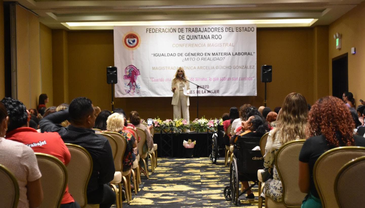 Con motivo del mes de la mujer la Federación de Trabajadores de Quintana Roo (CTM), que dirige José Isidro Santamaría Casanova, realizó una interesante conferencia sobre la Igualdad de Género en Materia Laboral, impartida por la magistrada Mónica Arcelia Güicho González, quien abordó el tema con base a las reformas de ley que actualmente permiten a la mujer mayor igualdad laboral, en lo que respecta a posiciones y salarios en los centros de trabajo.