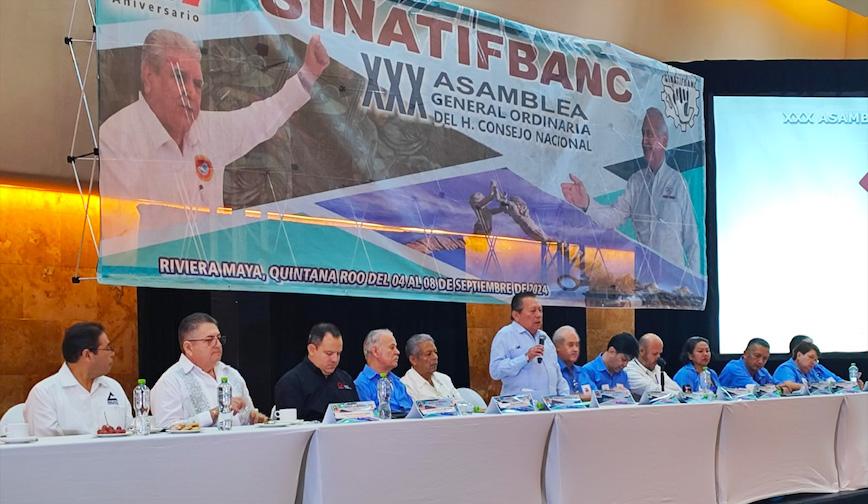 El Sindicato Nacional de Trabajadores de Instituciones Financiera, Bancarias, Organizaciones y Actividades Auxiliares de Crédito, Empleados de Oficinas (SINATIFBANC), que encabeza el Dr. Leopoldo Villaseñor Gutiérrez, realizaron su XXX Asamblea General Ordinaria del H. Consejo Nacional en Cancún, Quintana Roo, con la presencia de Don Abelardo Carrillo Zavala, quien acudió con la representación de Don Carlos Aceves del Olmo, Secretario General de la Confederación de Trabajadores de México (CTM), acompañado de Tereso Medina dirigente de la Federación de Coahuila y de José Isidro Santamaría, líder de la Federación del Estado.