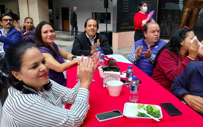 Antes de finalizar el año 2024, en la plaza principal de la sede Cetemista, se llevó a cabo la tradicional comida que reúne a trabajadores de intendencia, mantenimiento, secretarias, administrativos, directivos y dirigentes sindicales encabezados por Don Carlos Aceves del Olmo, Secretario General de la CTM.