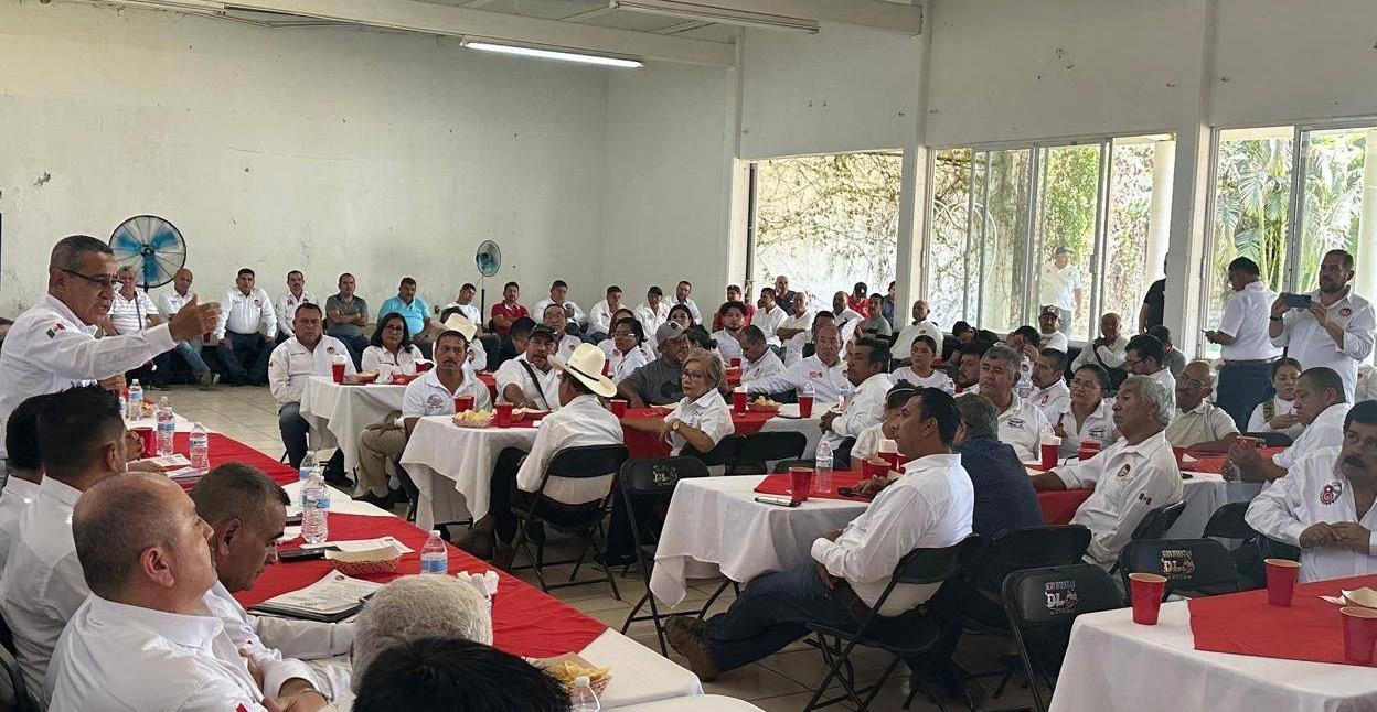 En la sede de la Confederación de Trabajadores de México (CTM) se llevó a cabo una reunión entre los líderes de diversas secciones sindicales de la región: 114, 101, 24, 61, SUTERM y representantes de distintas fábricas, encabezados por Arnulfo Bocanegra López, dirigente local de la CTM.
