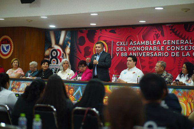 Sin duda, en el marco del 88 Aniversario de la fundación de nuestra Central, enfrentamos tiempos difíciles, pero hoy las banderas de la justicia social y de la clase trabajadora tenemos que levantarlas muy en alto.