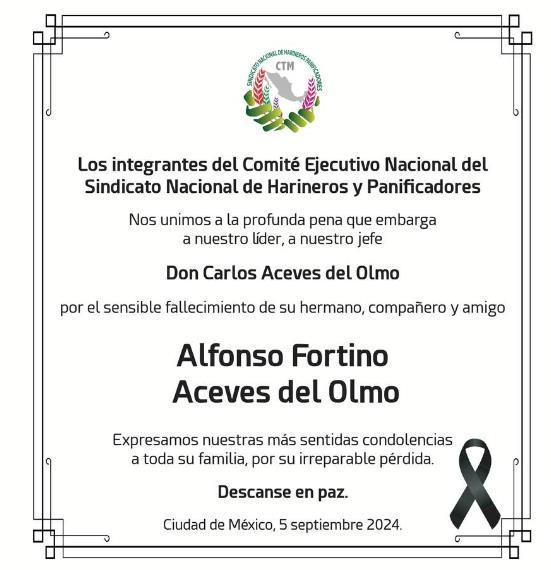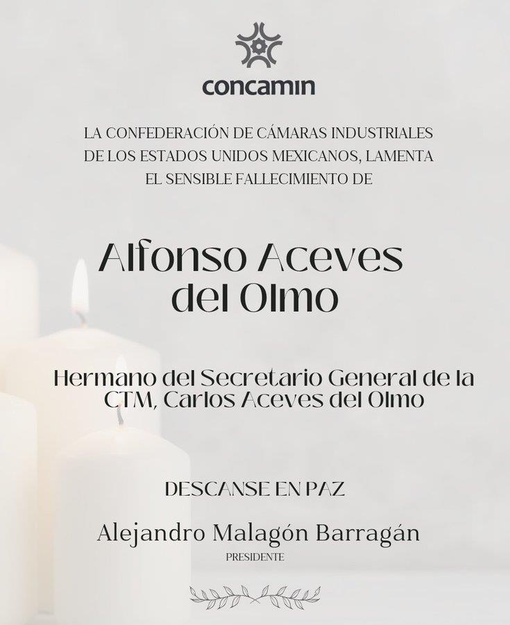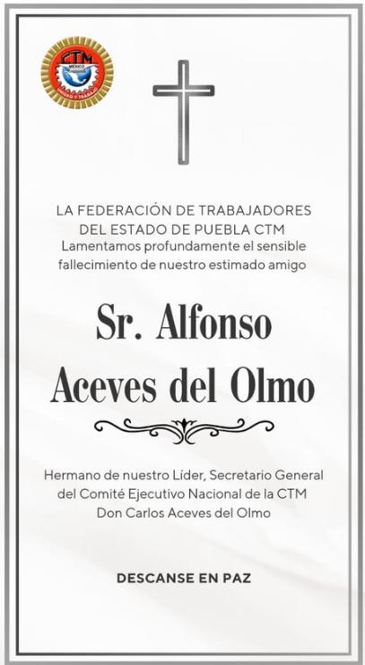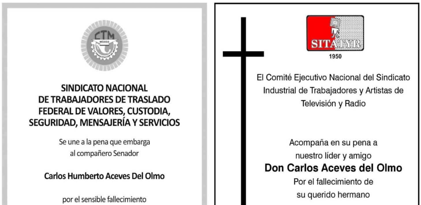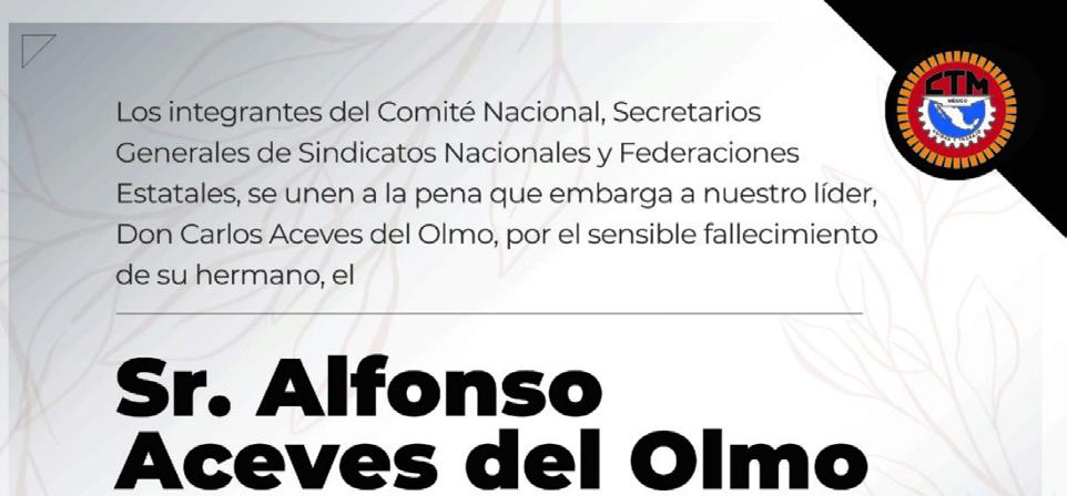 Integrantes del Comité Nacional de la CTM que encabeza el Senador Carlos Aceves del Olmo, lamentan profundamente el fallecimiento del compañero