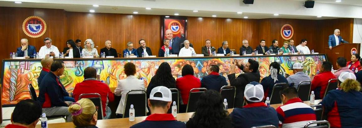 El Secretario General de la Confederación de Trabajadores de México (CTM), Don Carlos Aceves del Olmo, recibió en el Salón “Lombardo Toledano” de esta central obrera a integrantes del Sindicato Industrial de Trabajadores de la Industria Metal Mecánica (SITIMM), que dirige Alejandro Rangel Segovia, en el marco su Consejo Sindical Ordinario.