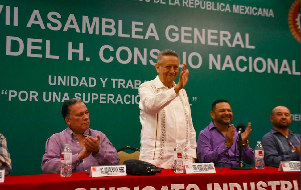 A nombre de Don Carlos el Secretario de Acción Política del Comité Nacional, Juan Carlos Velasco Pérez , reconoció el trabajo de Hugo Varela Flores, Secretario General de la Federación de Trabajadores de Guanajuato y de Alejandro Rangel, dirigente del SITIMM, porque dijo, el que celebren su Consejo Sindical Ordinario en la Ciudad de México y en la casa mayor del movimiento obrero de México, es un día de fiesta.