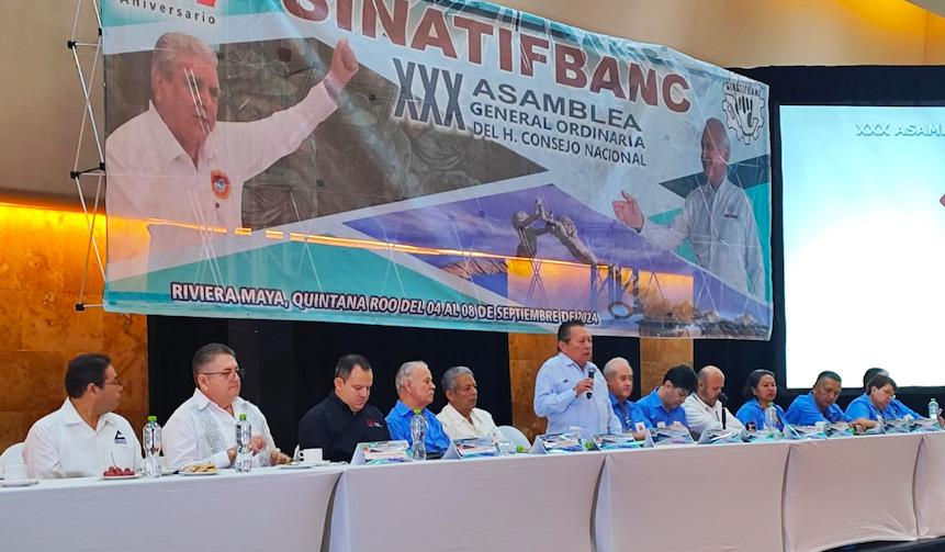 En días pasados compañeras y compañeros del Sindicato Nacional de Trabajadores de Instituciones Financiera, Bancarias, Organizaciones y Actividades Auxiliares de Crédito, Empleados de Oficinas (SINATIFBANC), encabezados por el Dr. Leopoldo Villaseñor Gutiérrez, realizaron su XXX Asamblea General Ordinaria del H. Consejo Nacional en Cancún, Quintana Roo, con la presencia de Don Abelardo Carrillo Zavala, quien acudió con la representación de Don Carlos Aceves del