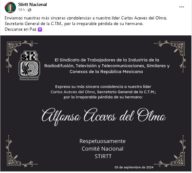 El pasado 6 de septiembre recordamos a distinguido cetemista y dirigente histórico del Sindicato de Trabajadores de la Industria de la Radiodifusión y Televisión (STIRT).